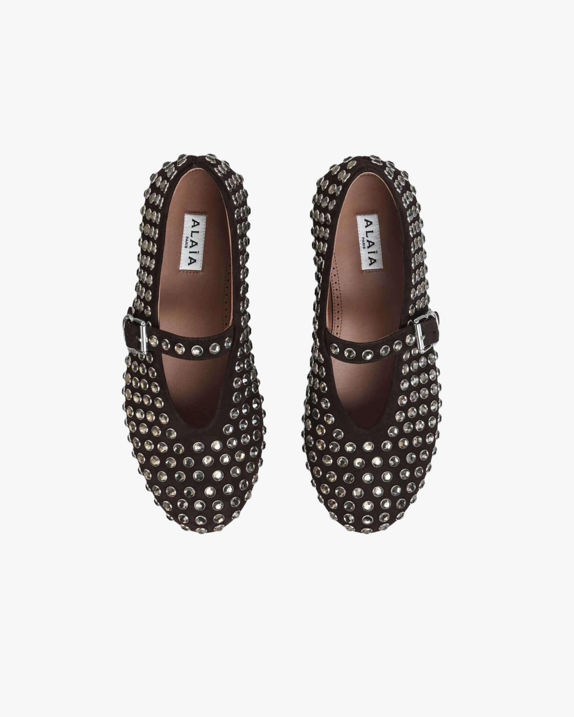 ALAÏA Women's Strass Suede Ballet Flats Brown733