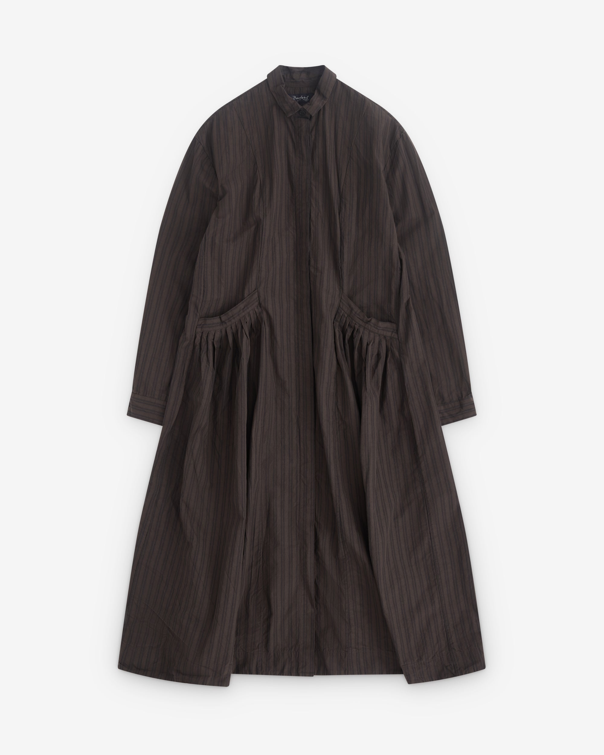 Classic collar Button closure at neckFront pleated patch pocketsBoxy fitButton close cuffsSplit front seam Striped cotton fabric
