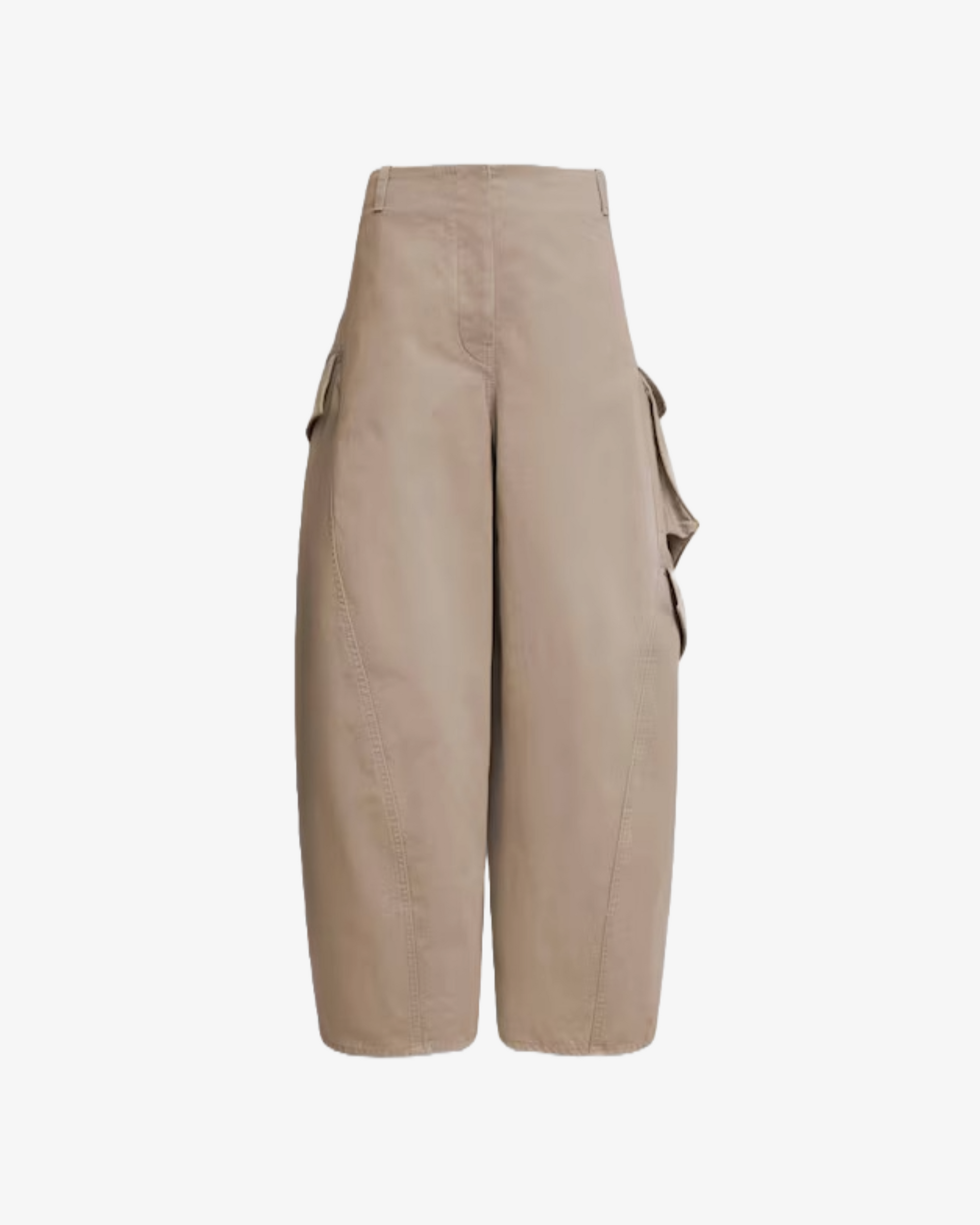 Twisted round pants in washed chinoMid-rise, ankle length, curved leg with twisted seams, side patch pockets and back welt pocketLoose fitMade in Italy