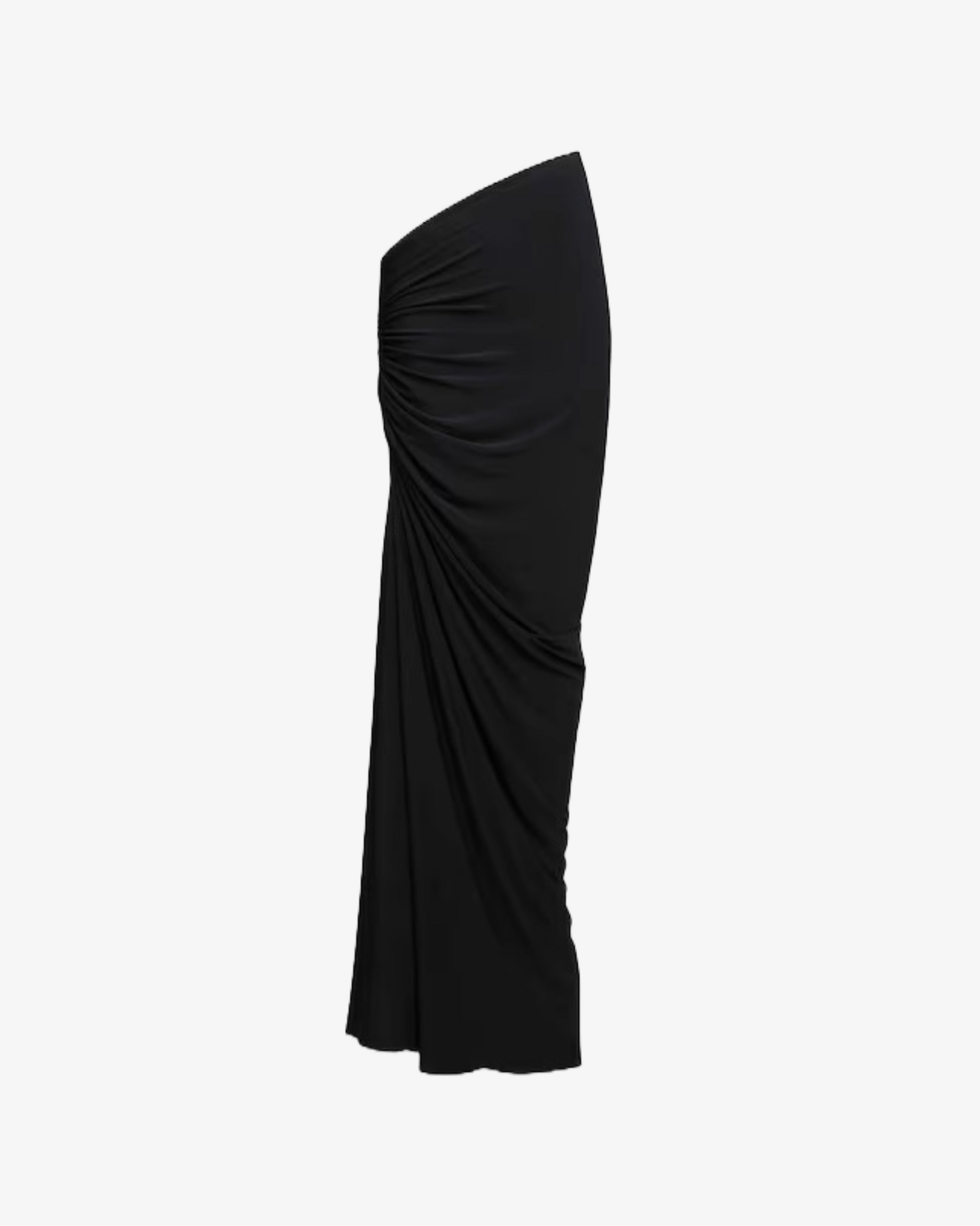 Long draped skirt in soft jerseyAsymmetrical waist, gathered details on the sideSlim fit, fluid fallMade in Italy