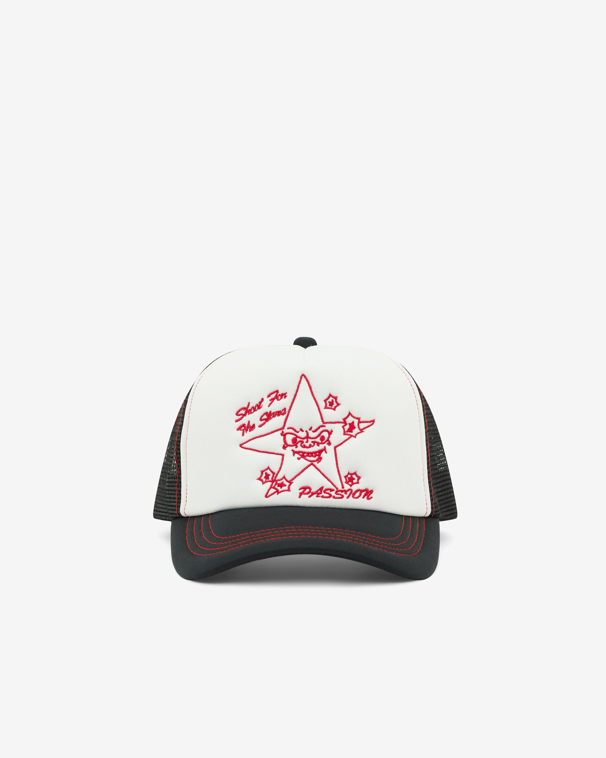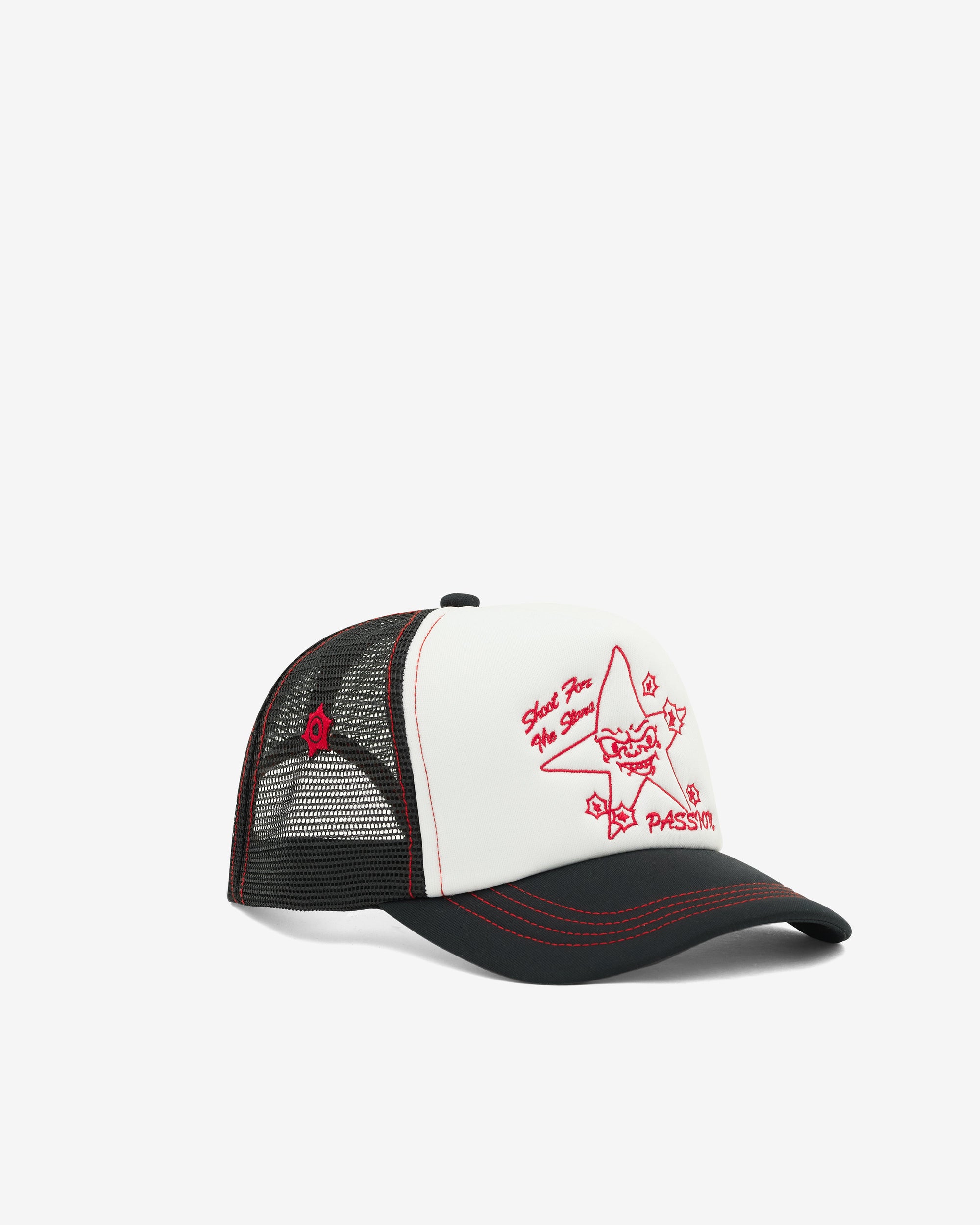 DSM ExclusiveCurved brimTrucker cap constructionMesh rear panelsEmbroidered graphics at crownAdjustable back strap