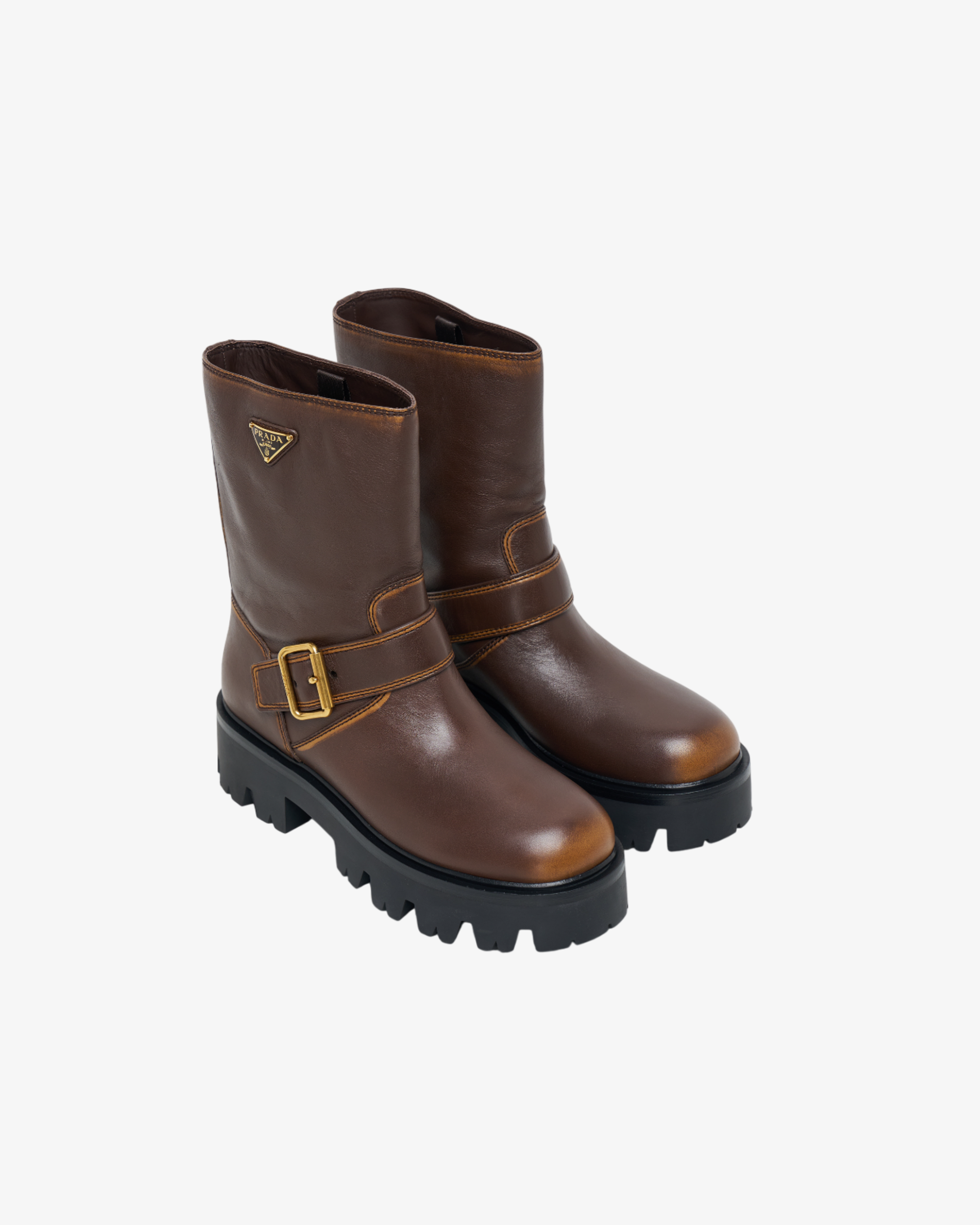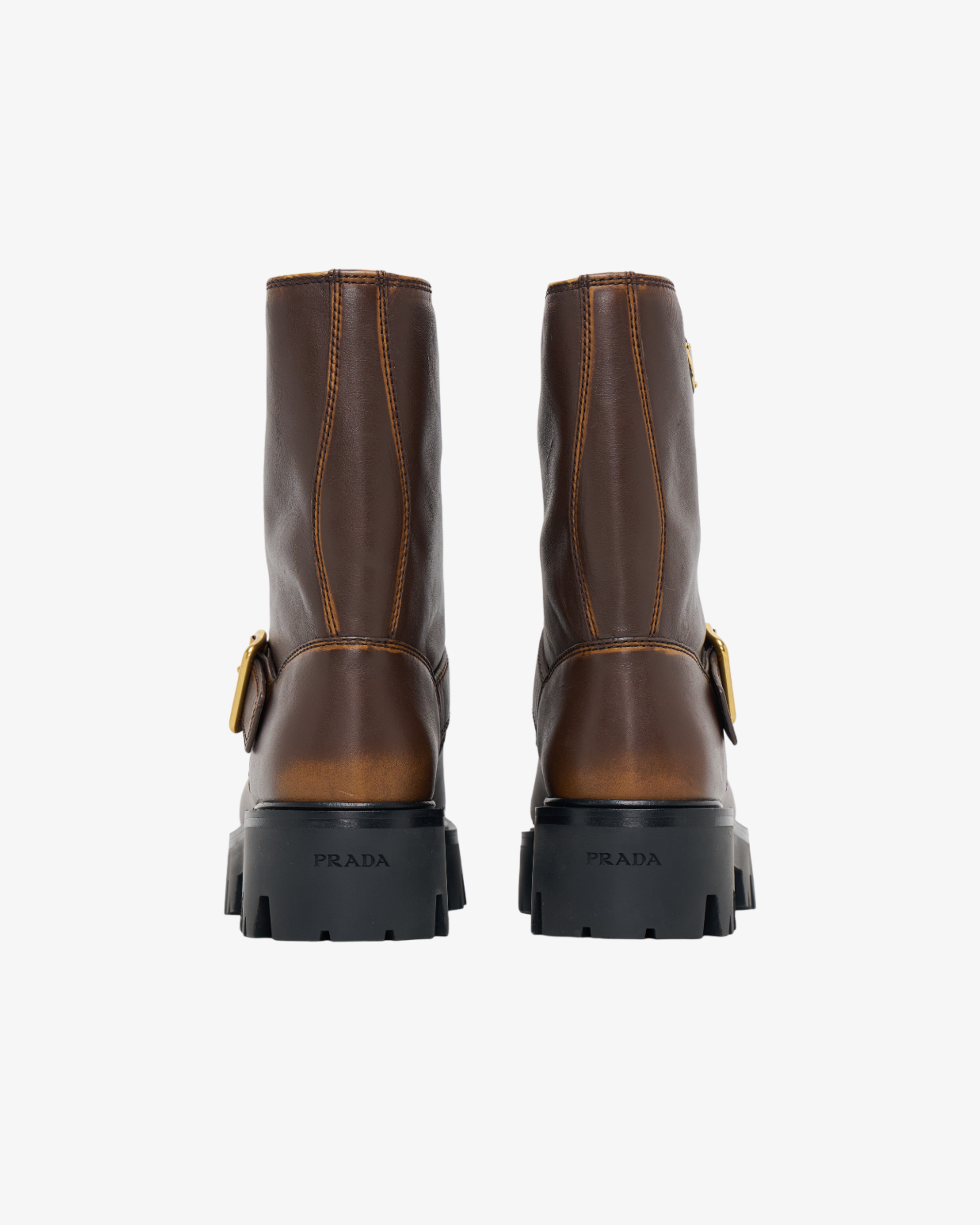 Prada Women's Vitello Vintage Stride Boot Brown F0324