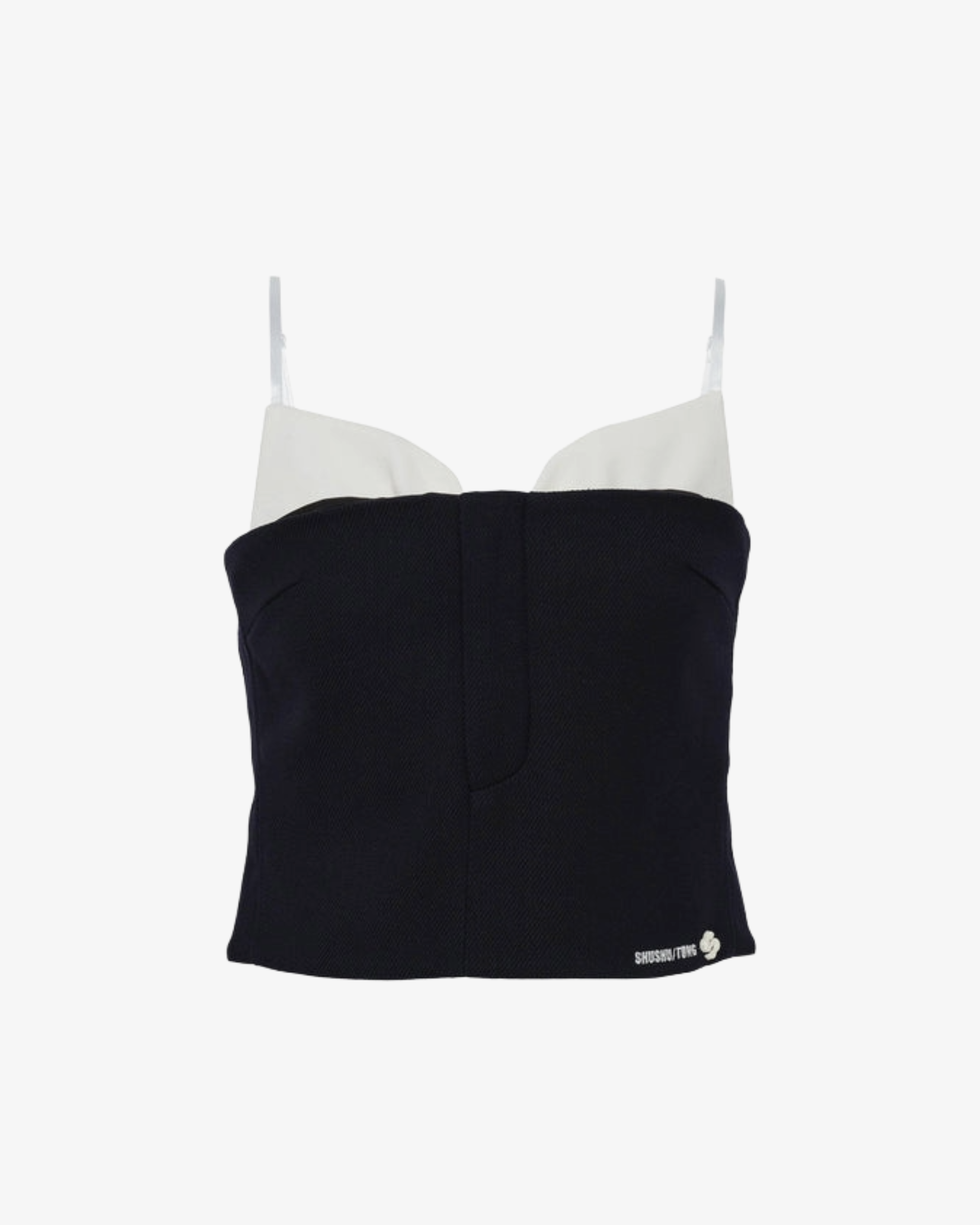 SHUSHU/TONG Women's Double Bow Corset Straps Top Navy Na100