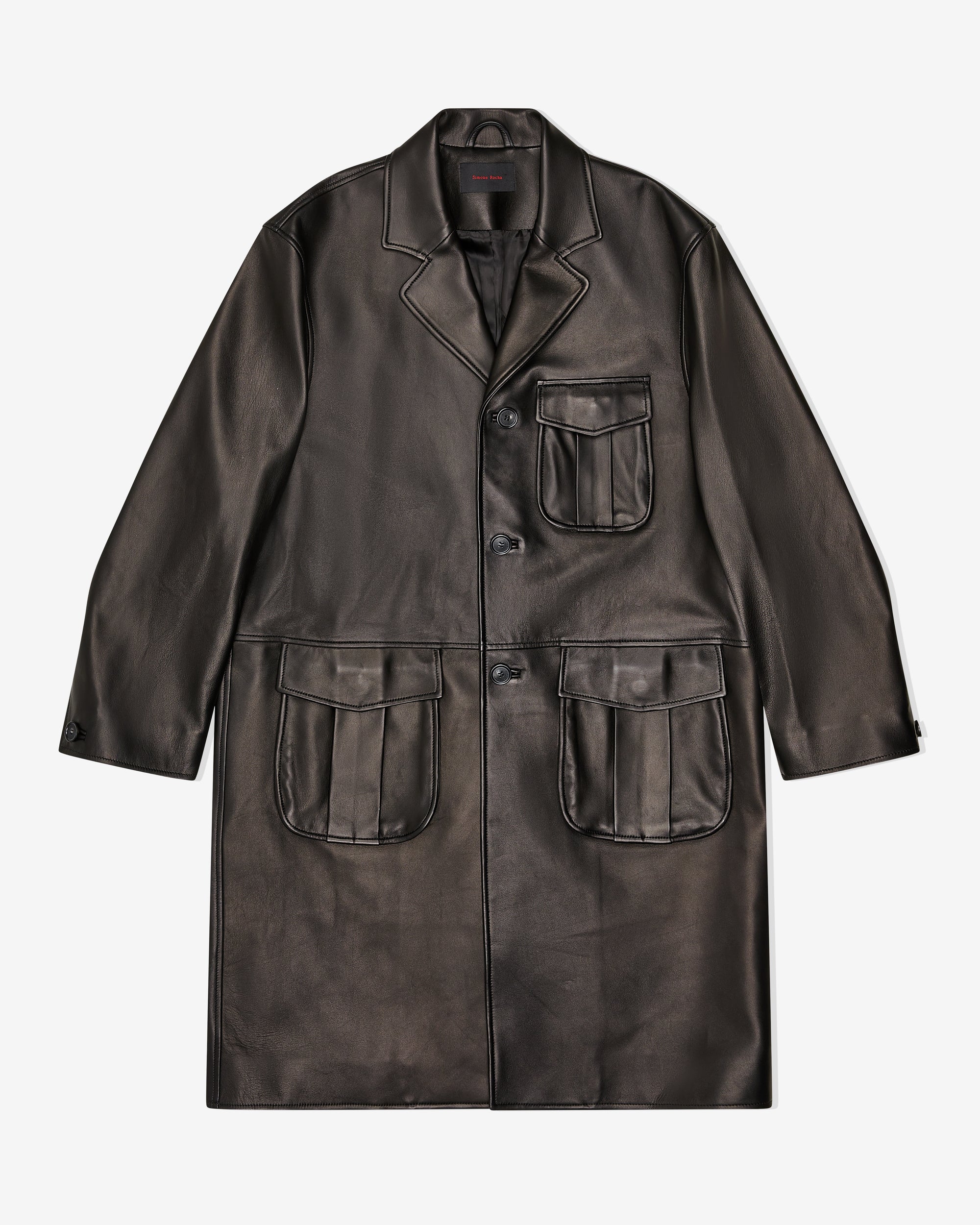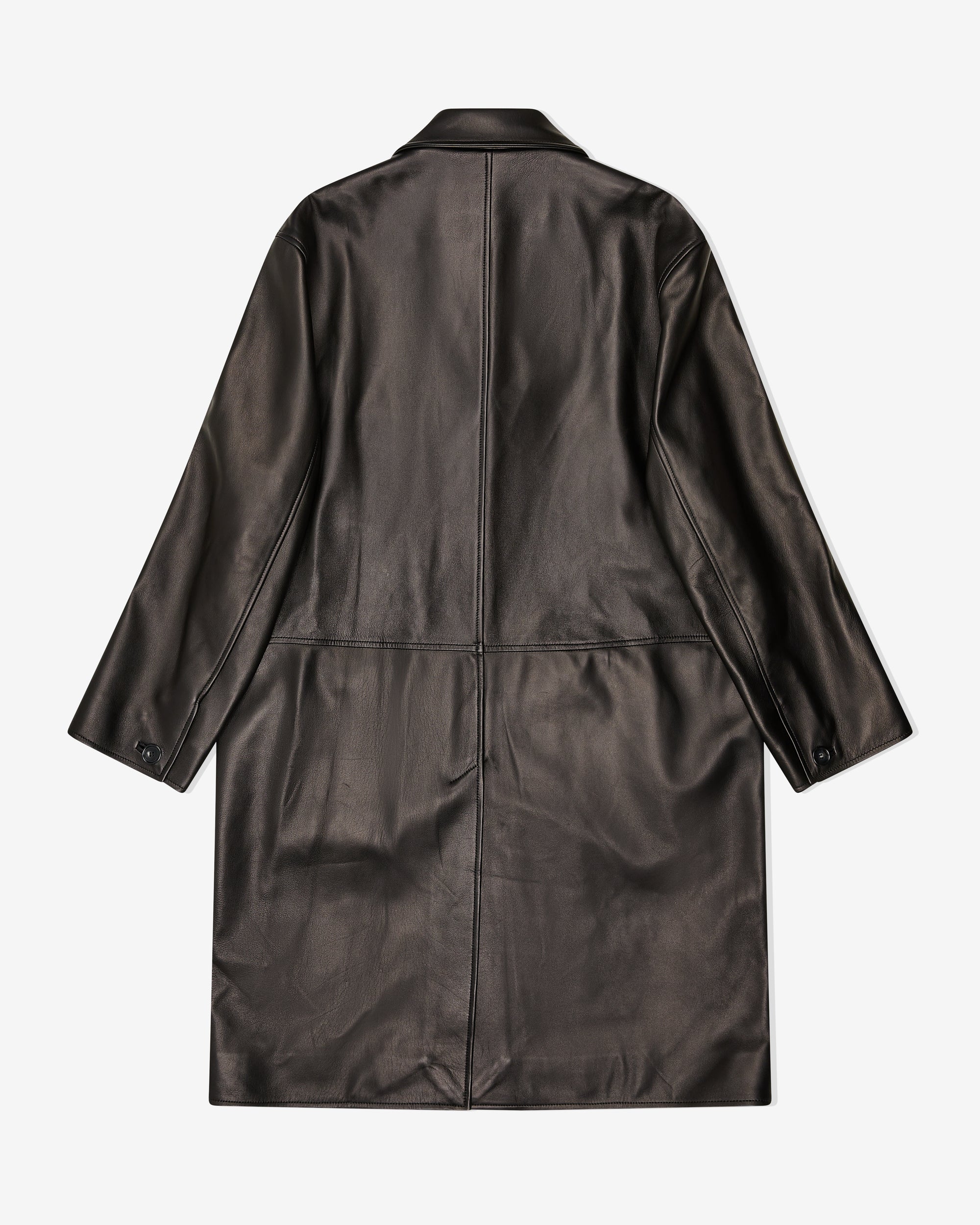 Nappa leather car coatSpread collarButton closureMulti flap pockets at frontBoxy fit100% Lamb LeatherMade in Portugal