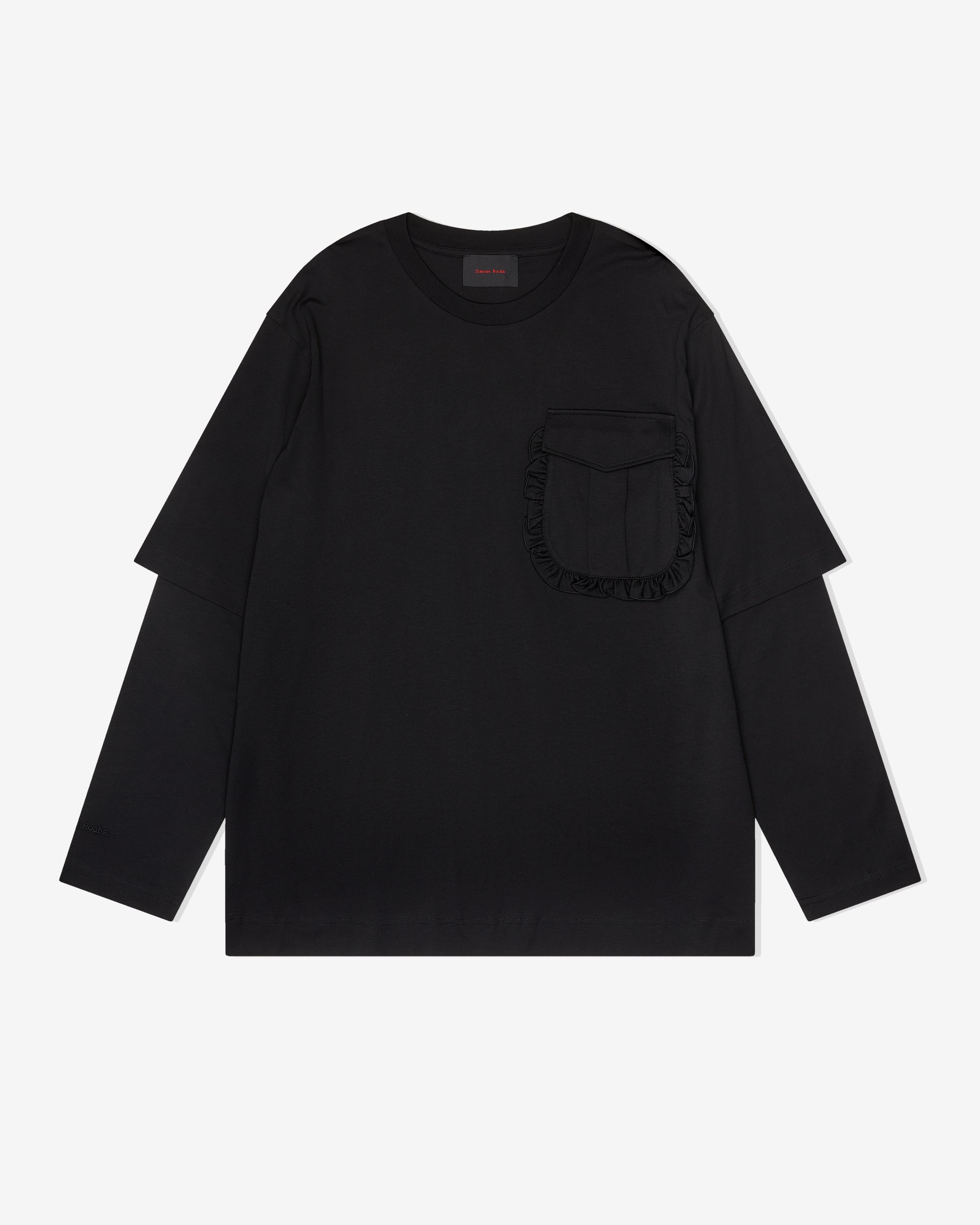 Cotton jersey long sleeve t-shirtLayered constructionRuffle detail flap pocket at frontEmbroidered tonal logo at backOversized fit100% CottonMade in Portugal