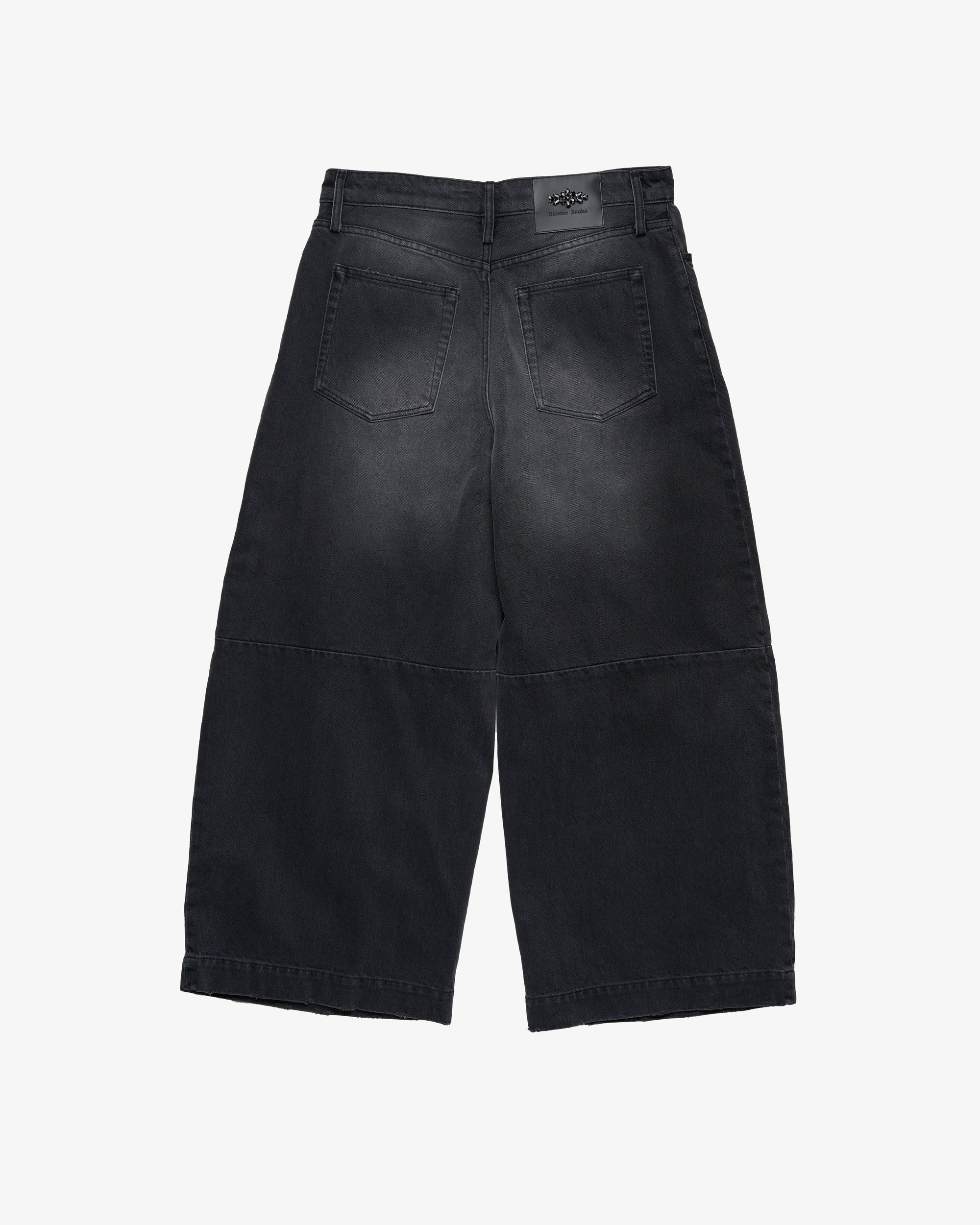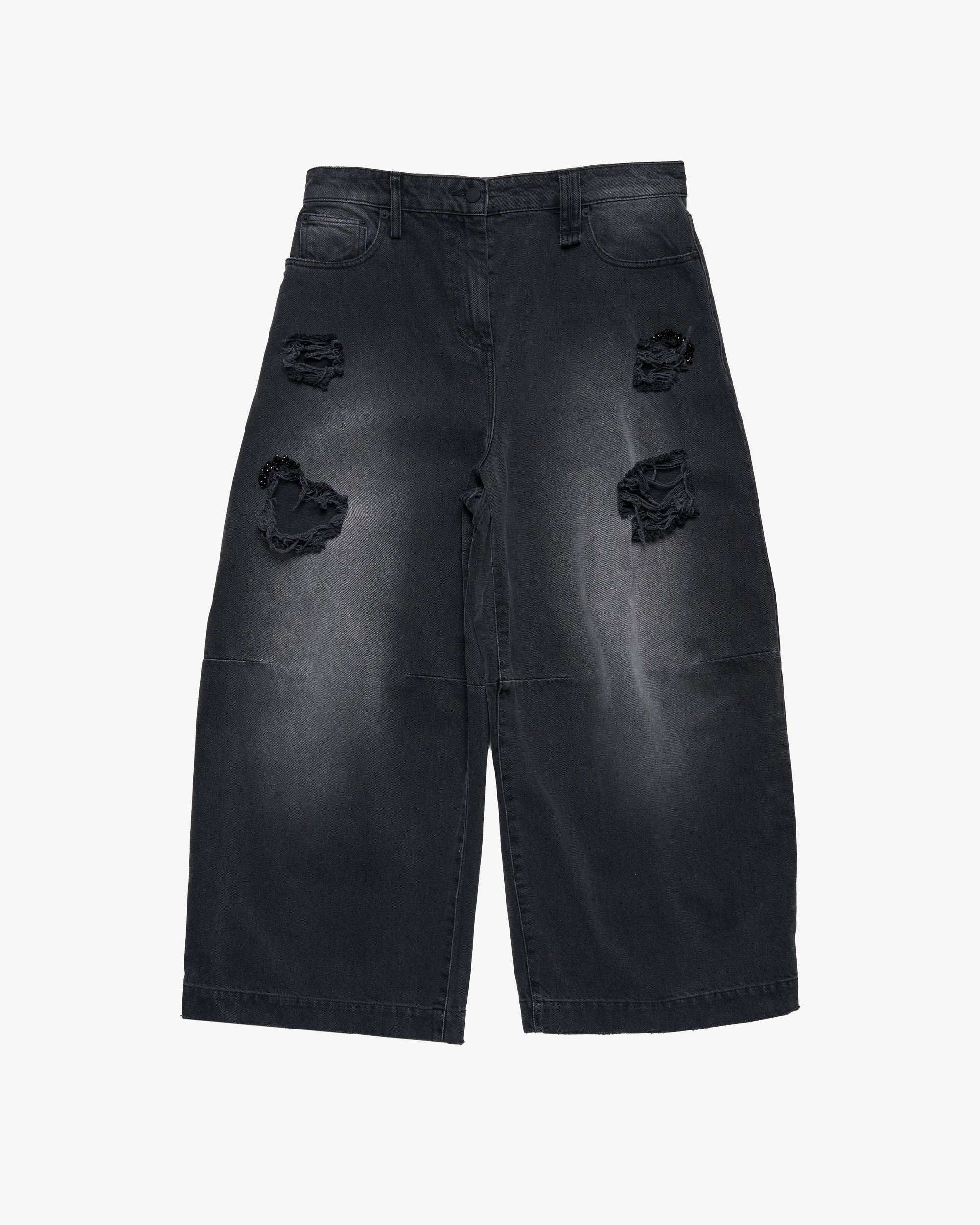 SIMONE ROCHA Women's Cropped Distressed Wide Leg Puddle Jeans Black