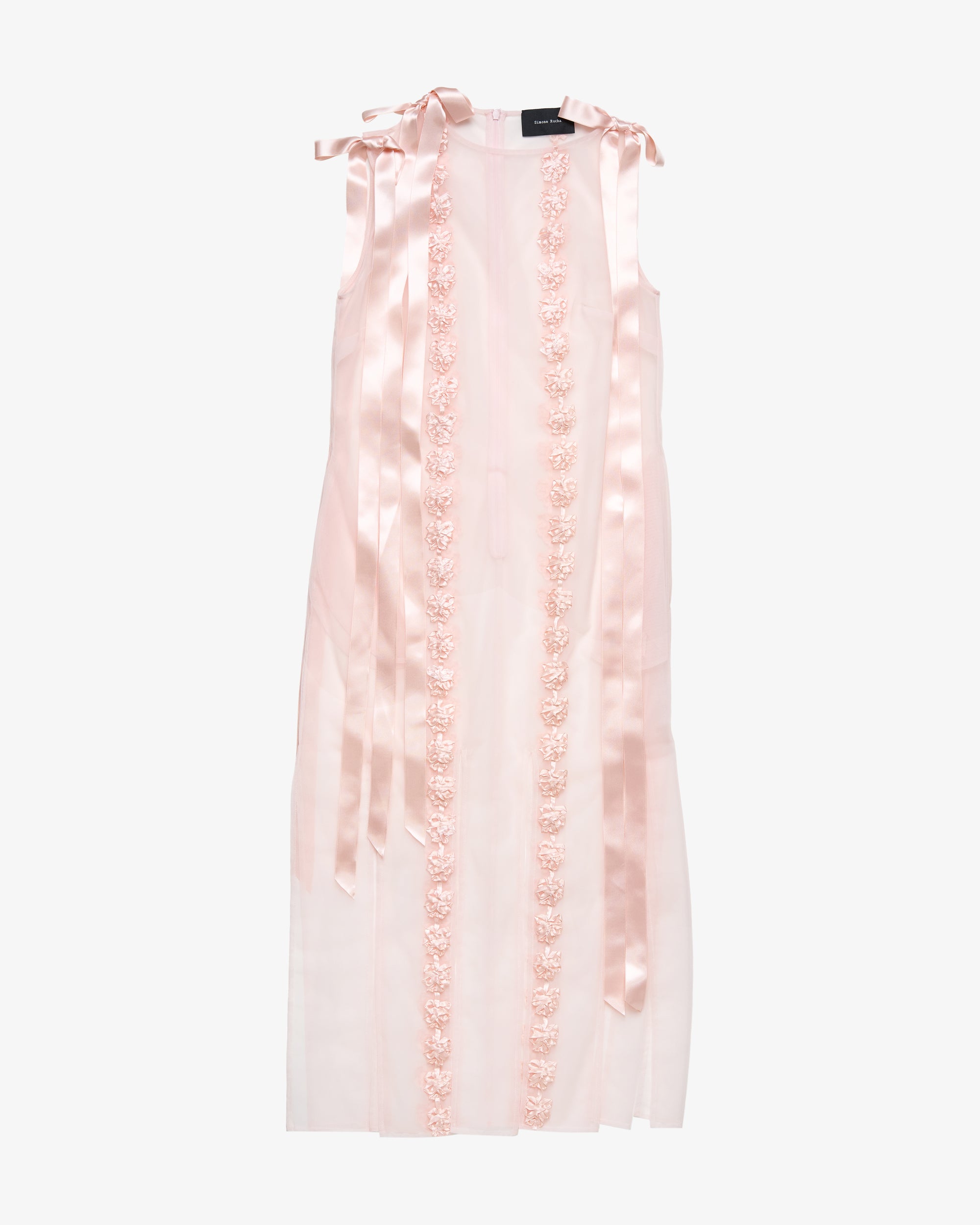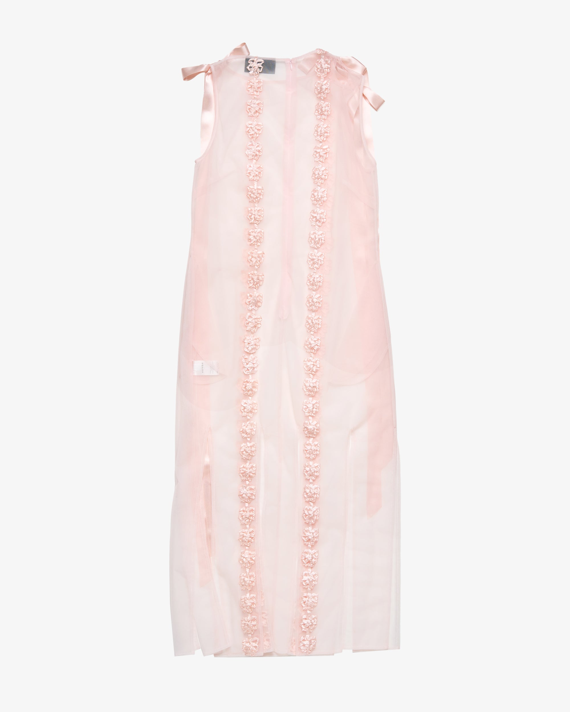 Sheer tulle dress• From Look 25 on the runway• Ribbon appliqué at front• Bow detail at shoulder• Cut-out detail at shoulder• Seasonal slit detailComposition: 100% NylonRibbon: 100% Polyester