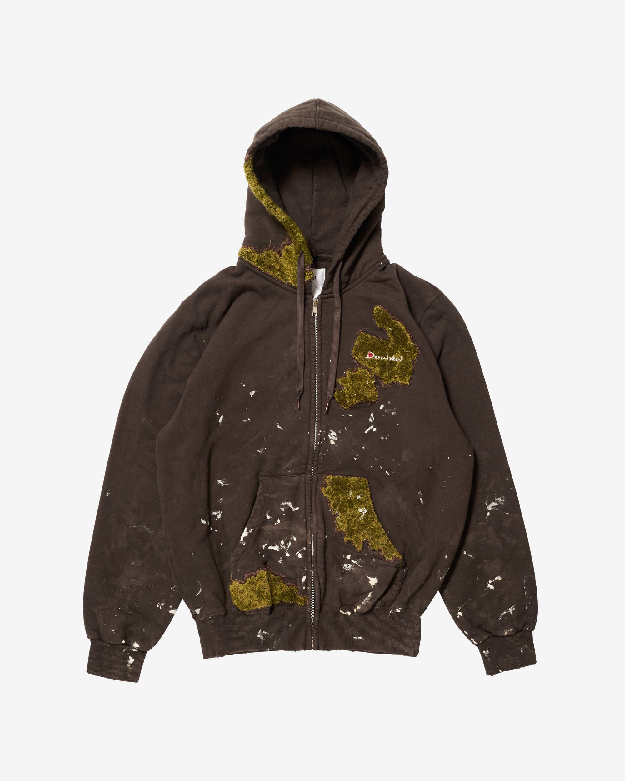 Zip front closureEmbroidered moss detailsHoodLogo at chestRibbed trimCottonMade in Japan