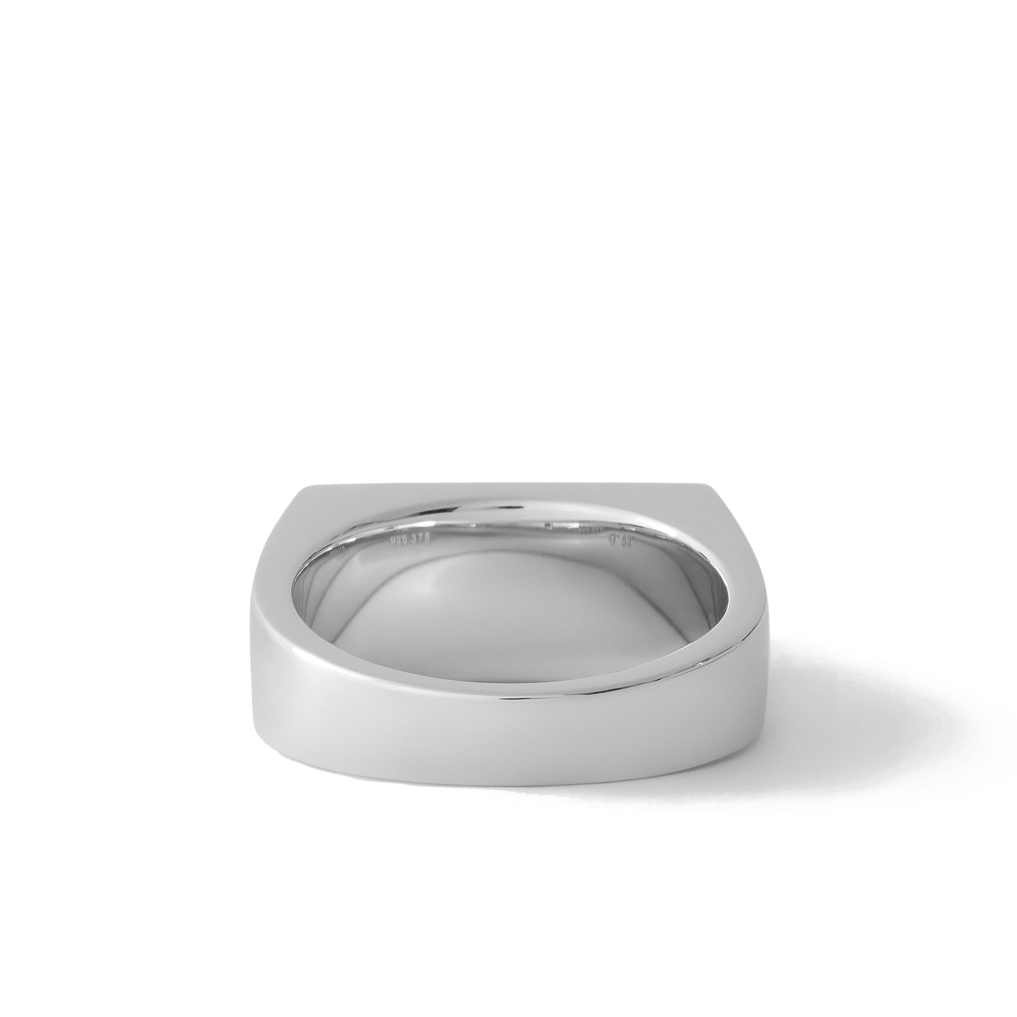 The Peaky Ring Gold Top is a slim signet ring made of high quality 925 sterling silver, plated in white rhodium to strengthen the surface and to prevent tarnishing.