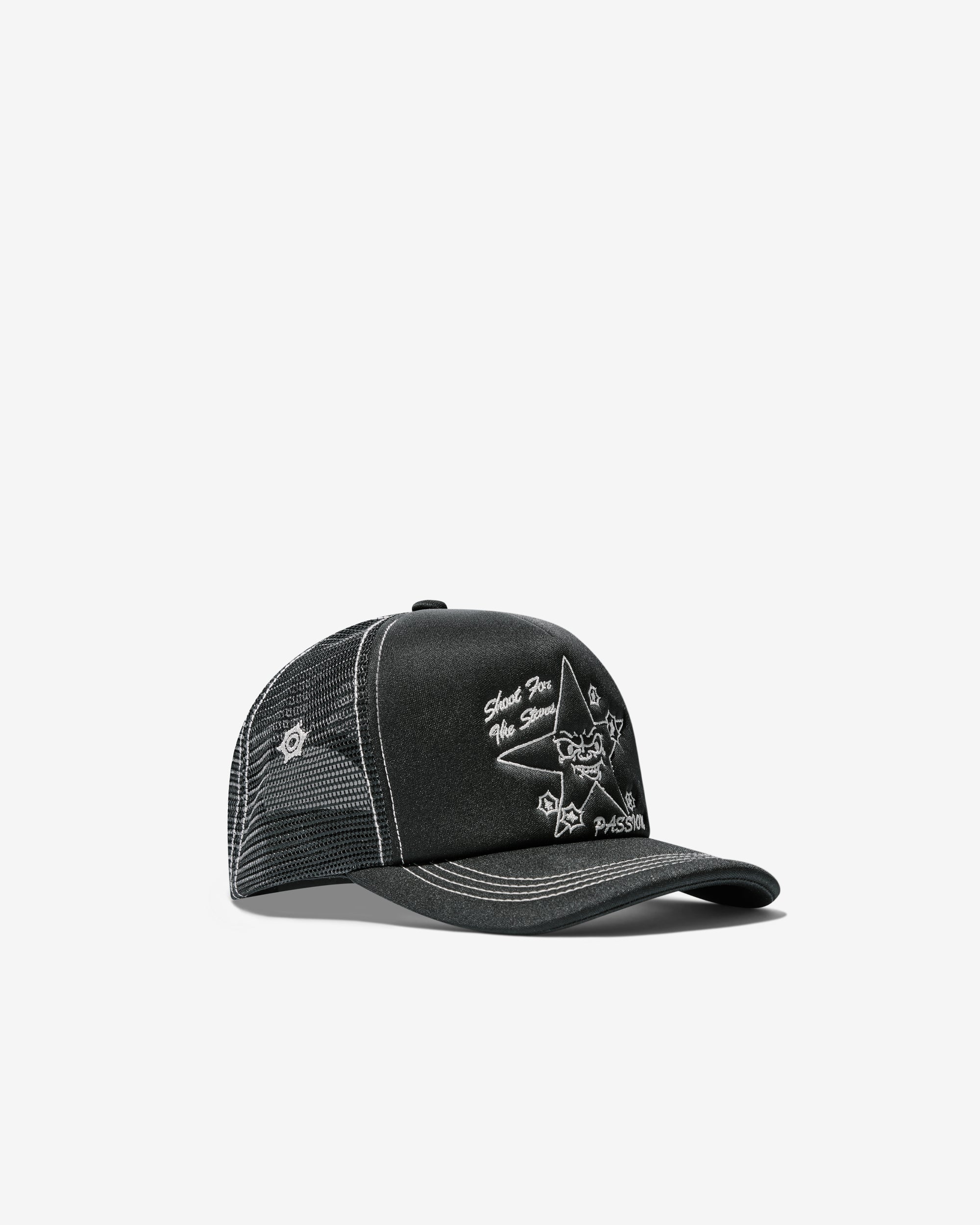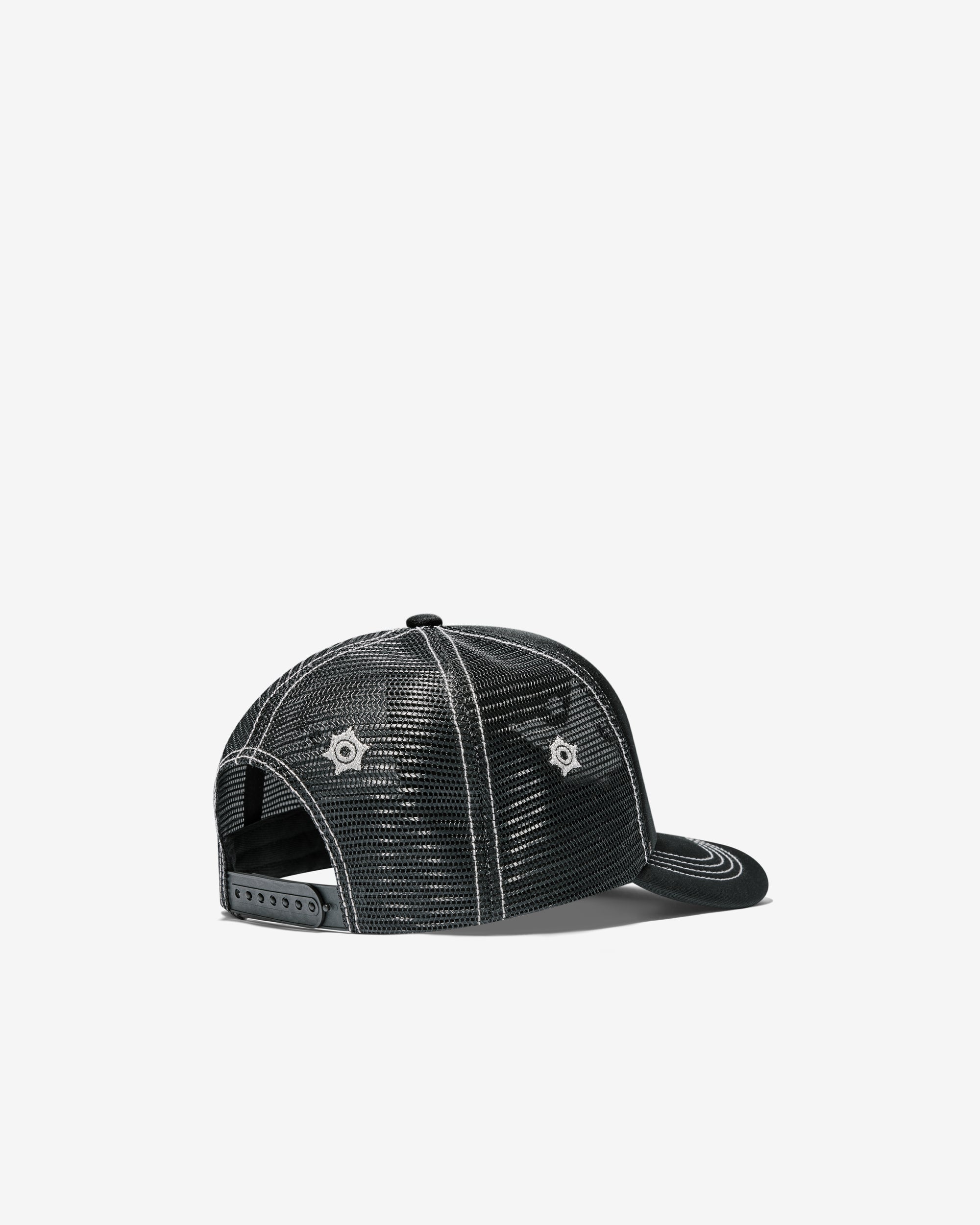 DSM ExclusiveCurved brimTrucker cap constructionMesh rear panelsEmbroidered graphics at crownAdjustable back strap