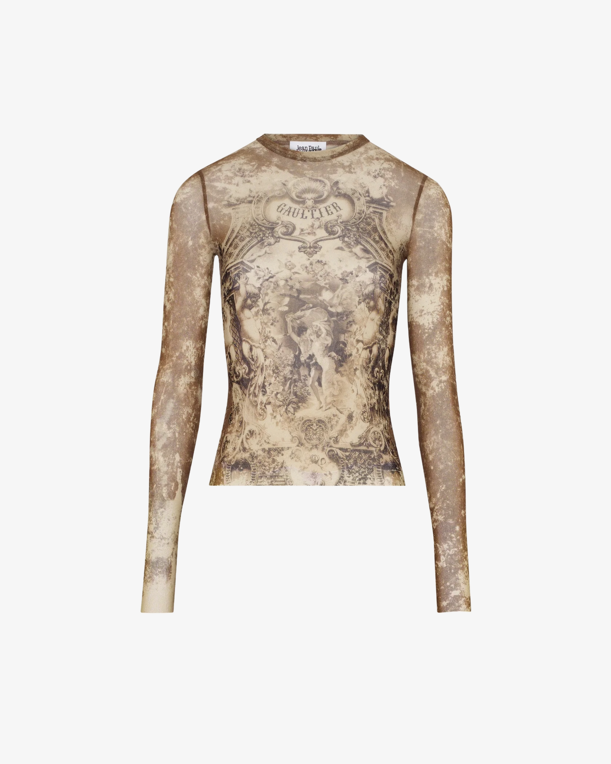 Jean Paul Gaultier Women's Mesh Long Sleeves Top Beige6965