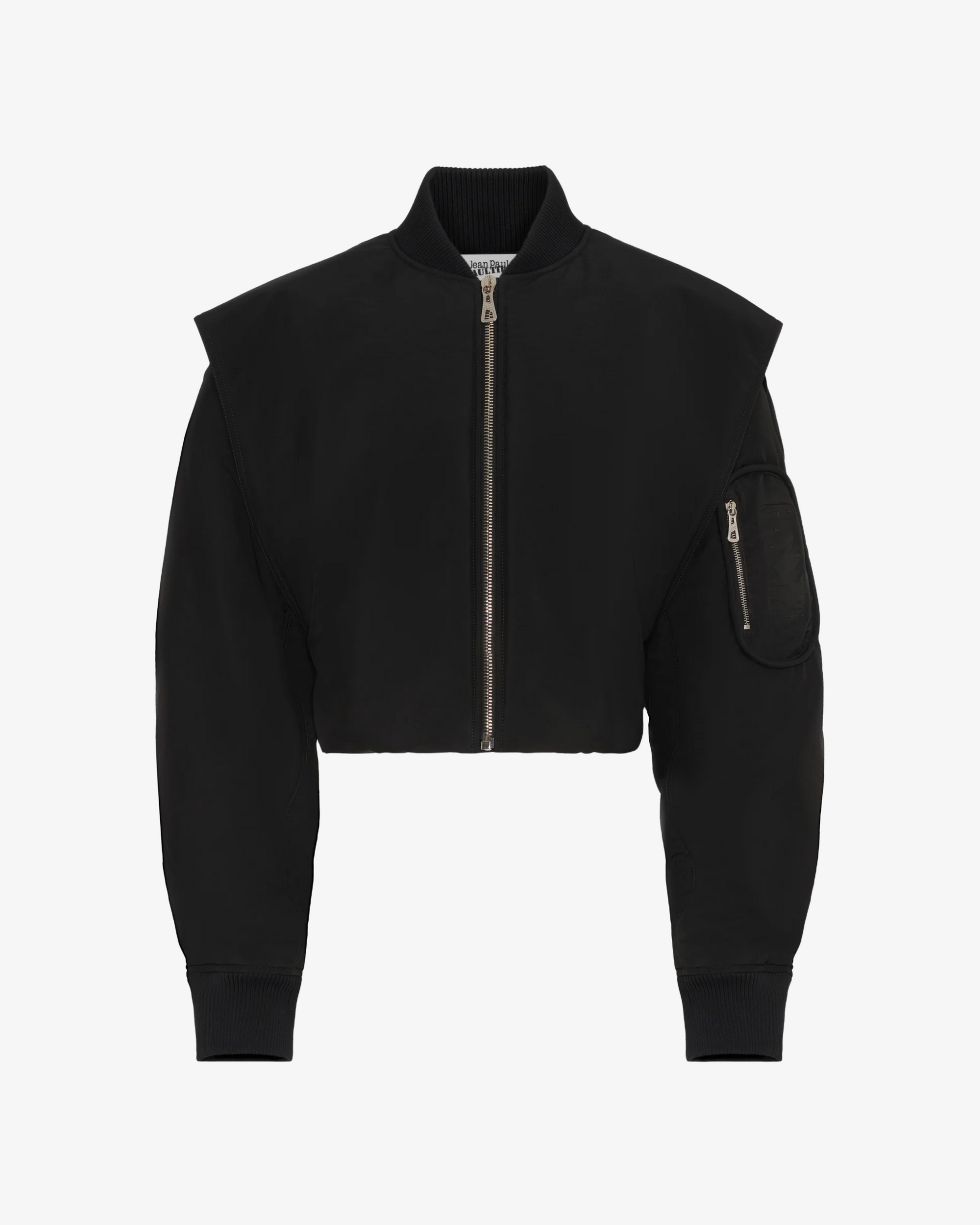 - Boxy fit- Two zipper fastenings with Jean Paul Gaultier engraving, in front and back- Two flat pockets in front- One zippered pocket on left sleeve with Jean Paul Gaultier logo- Materials: 52% polyamide, 48% polyester- Made in Italy