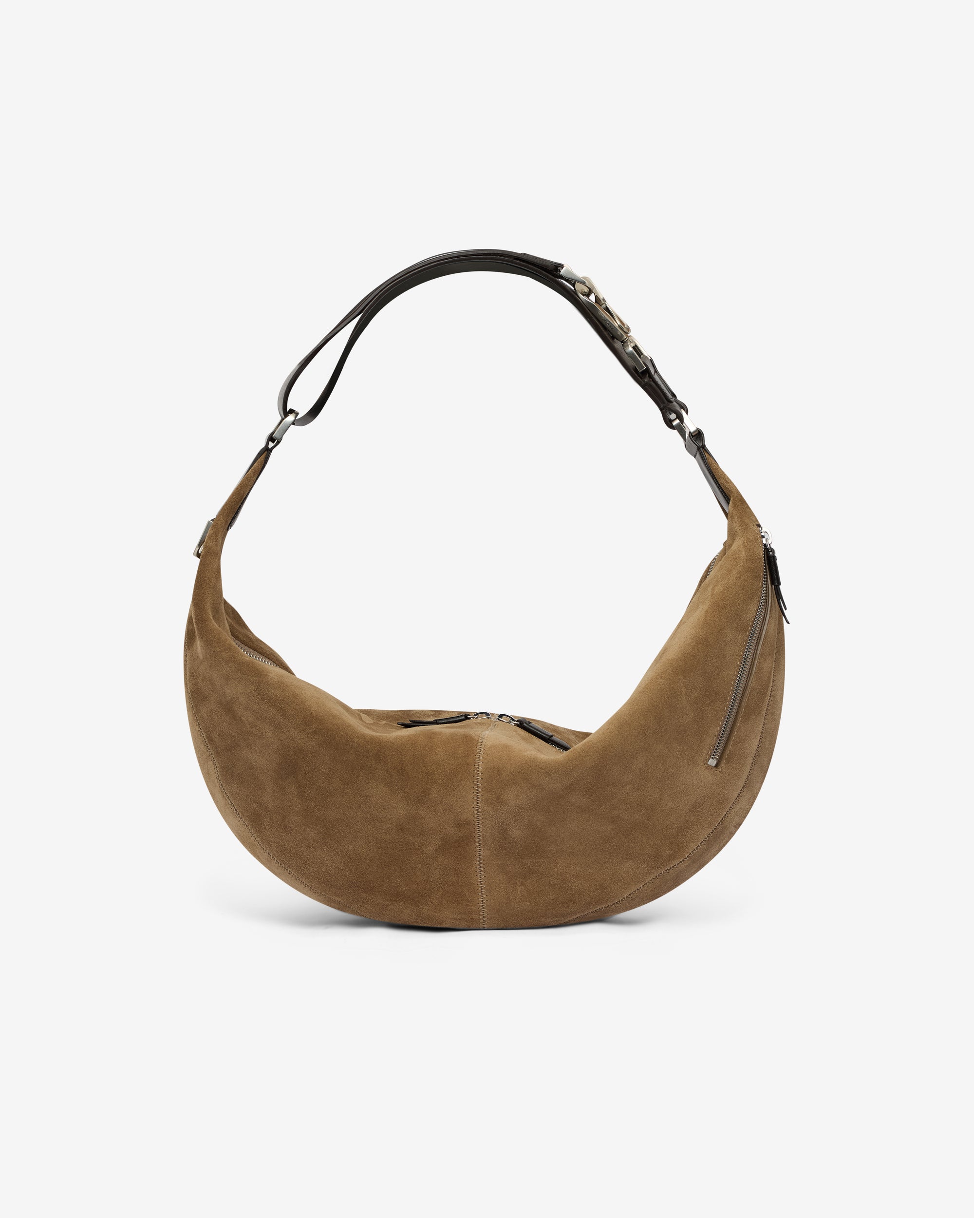 Adjustable handle in grained leather adjustable with buckles and carabiner hooks