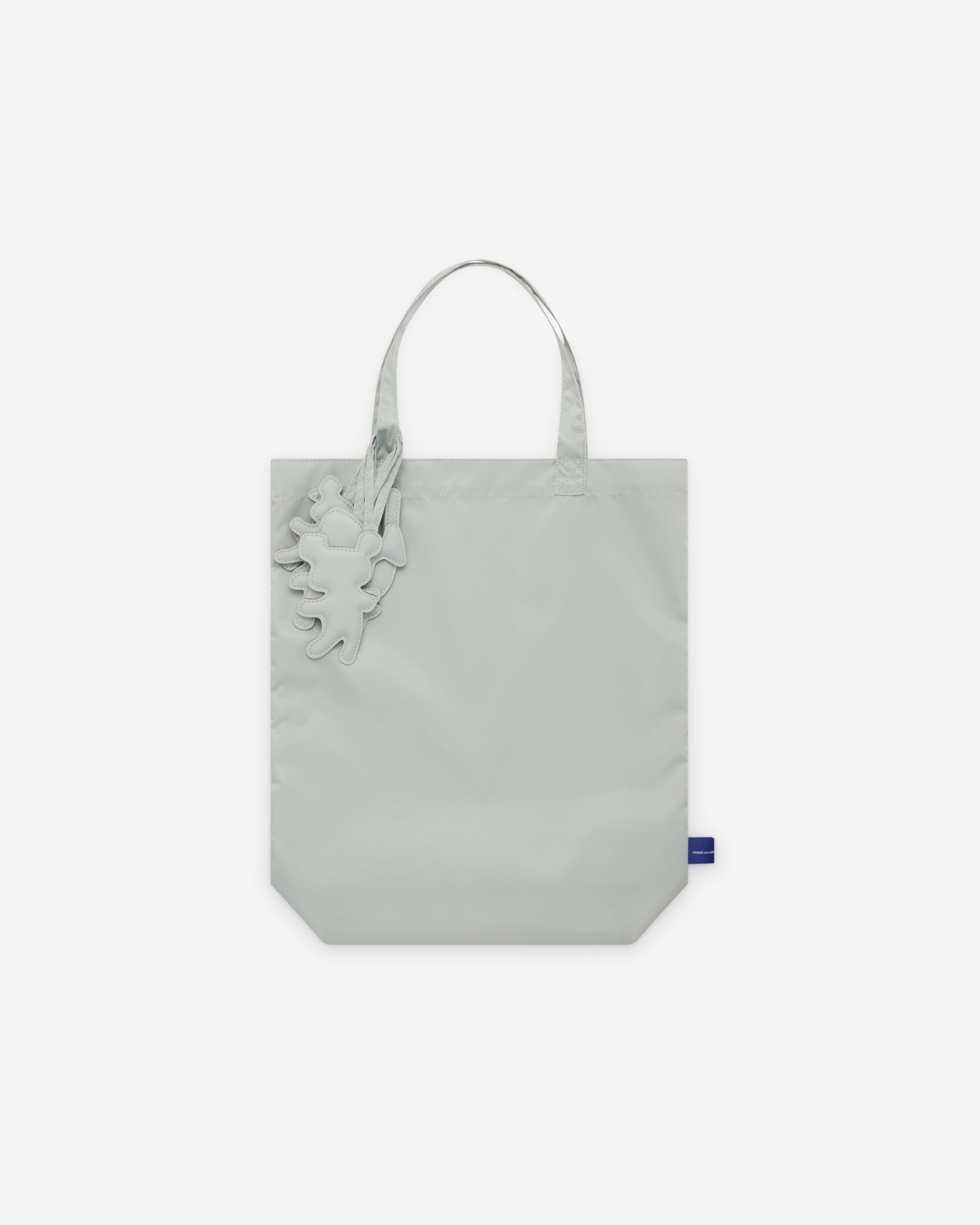 Top carry handleOne single main compartmentTab label at sideAttached charms at strap