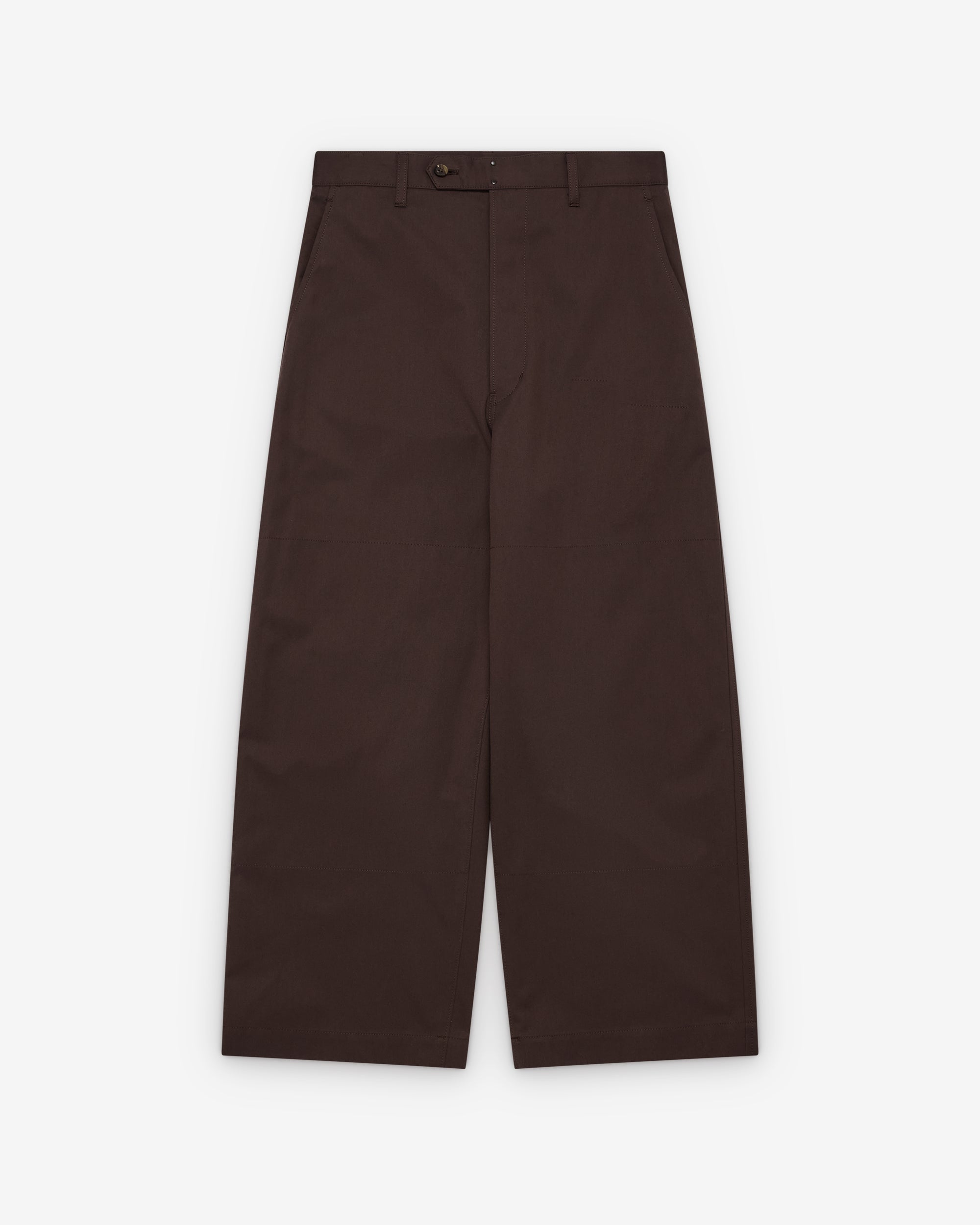 Button waist and flySide seam slip pocketsWide legPanelled constructionTwo rear pockets