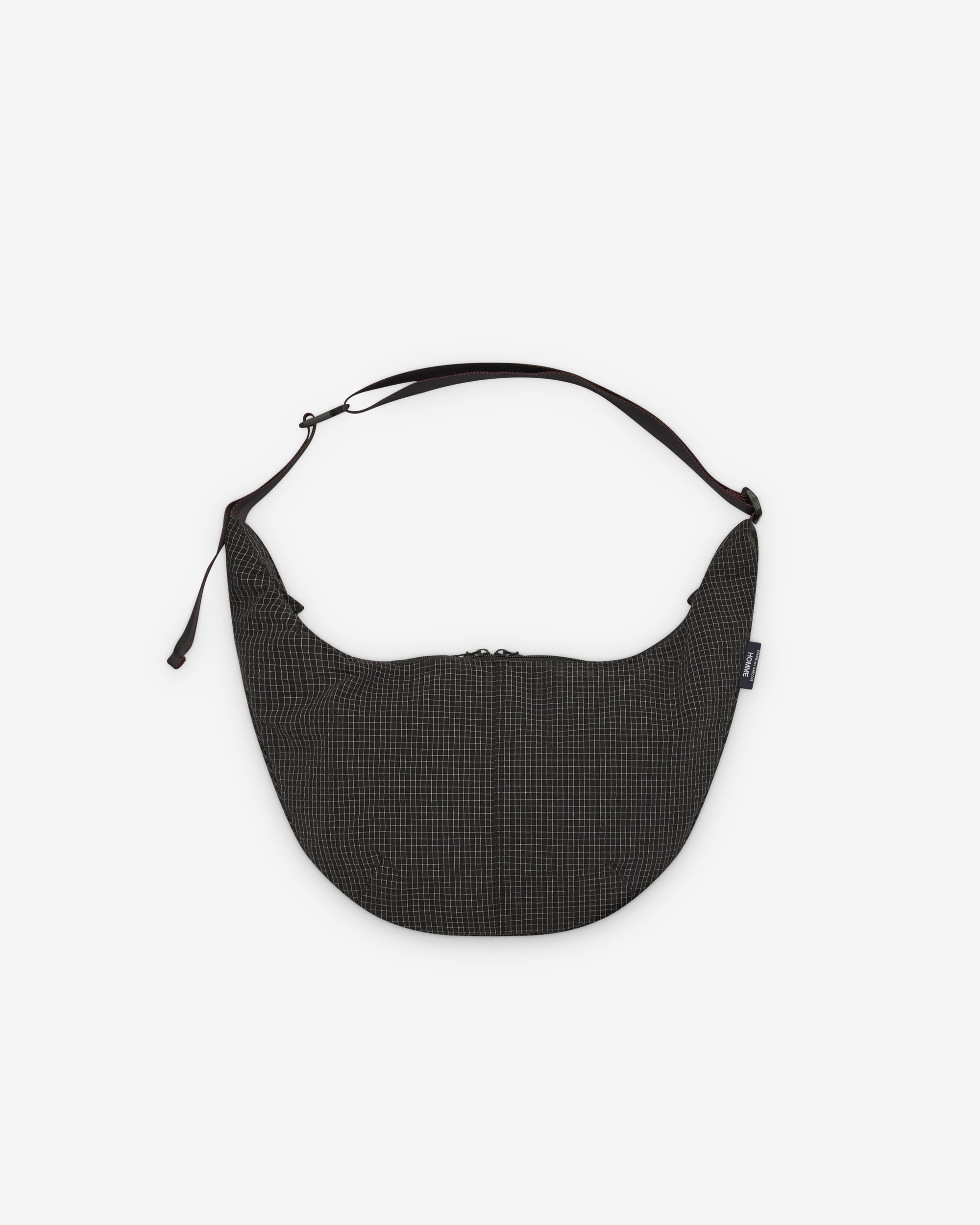 Adjustable shoulder strapTwo zipper top closureCDG Homme tab label at frontCheck fabricOne main compartment