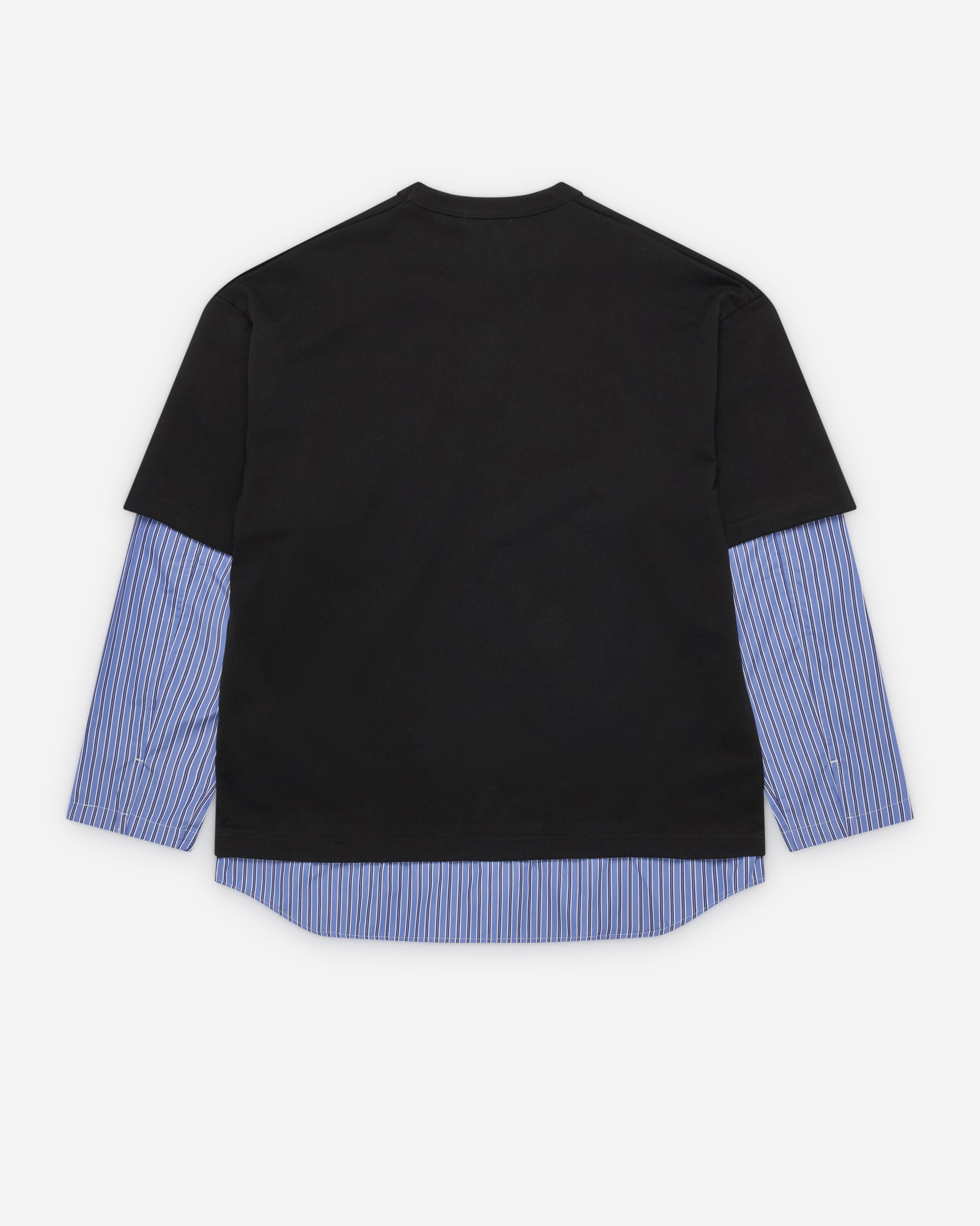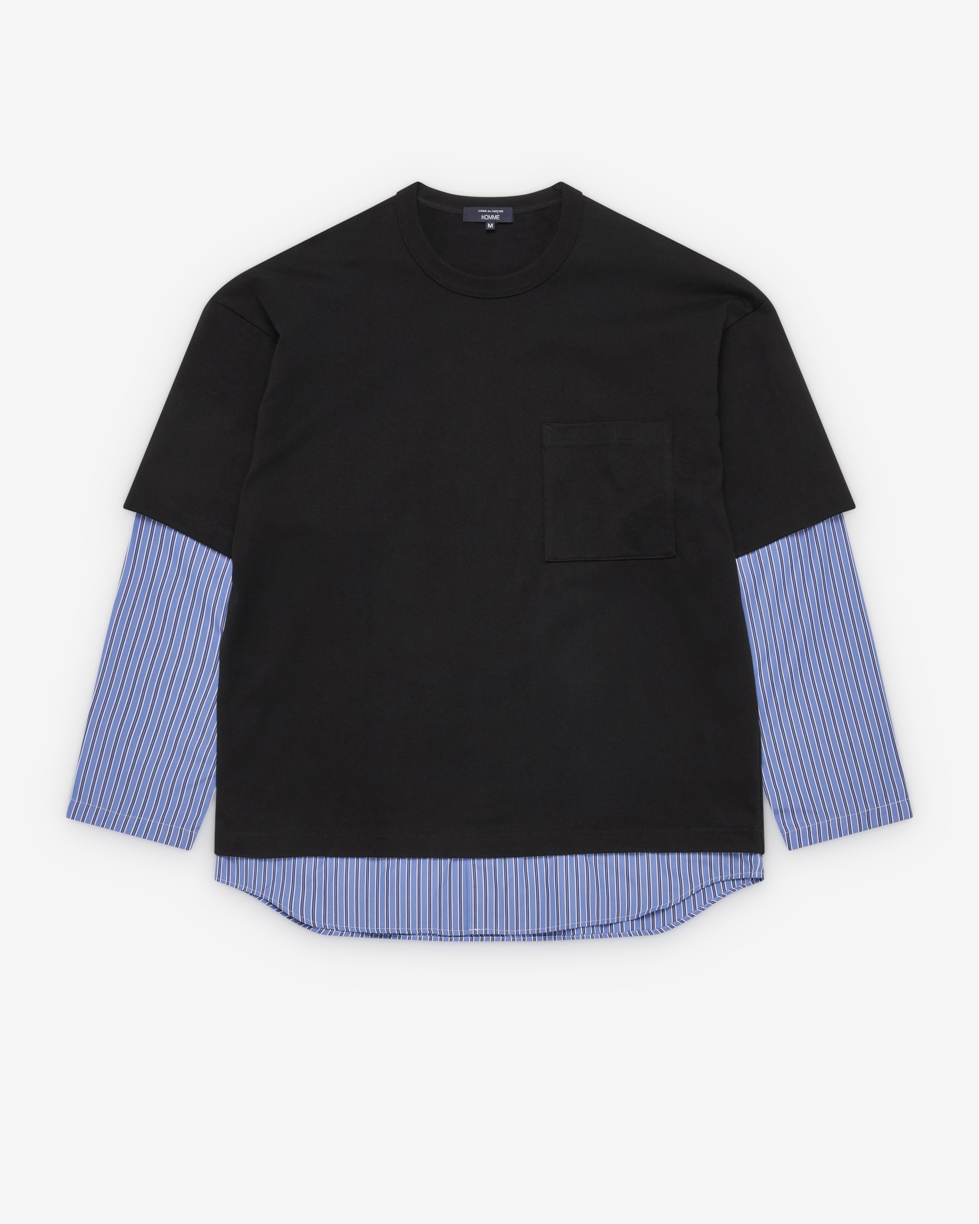Ribbed crew necklineChest pocketHeavyweight cotton fabricLayered striped poplin long sleeve