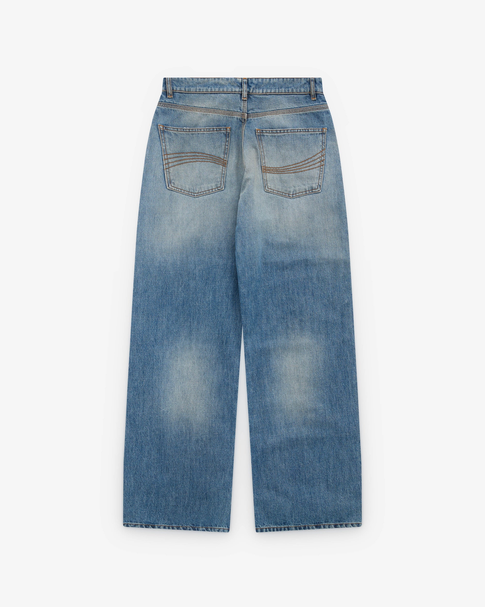 Straight leg Faded wash 5 pocket construction Button and fly fastening Belt loops