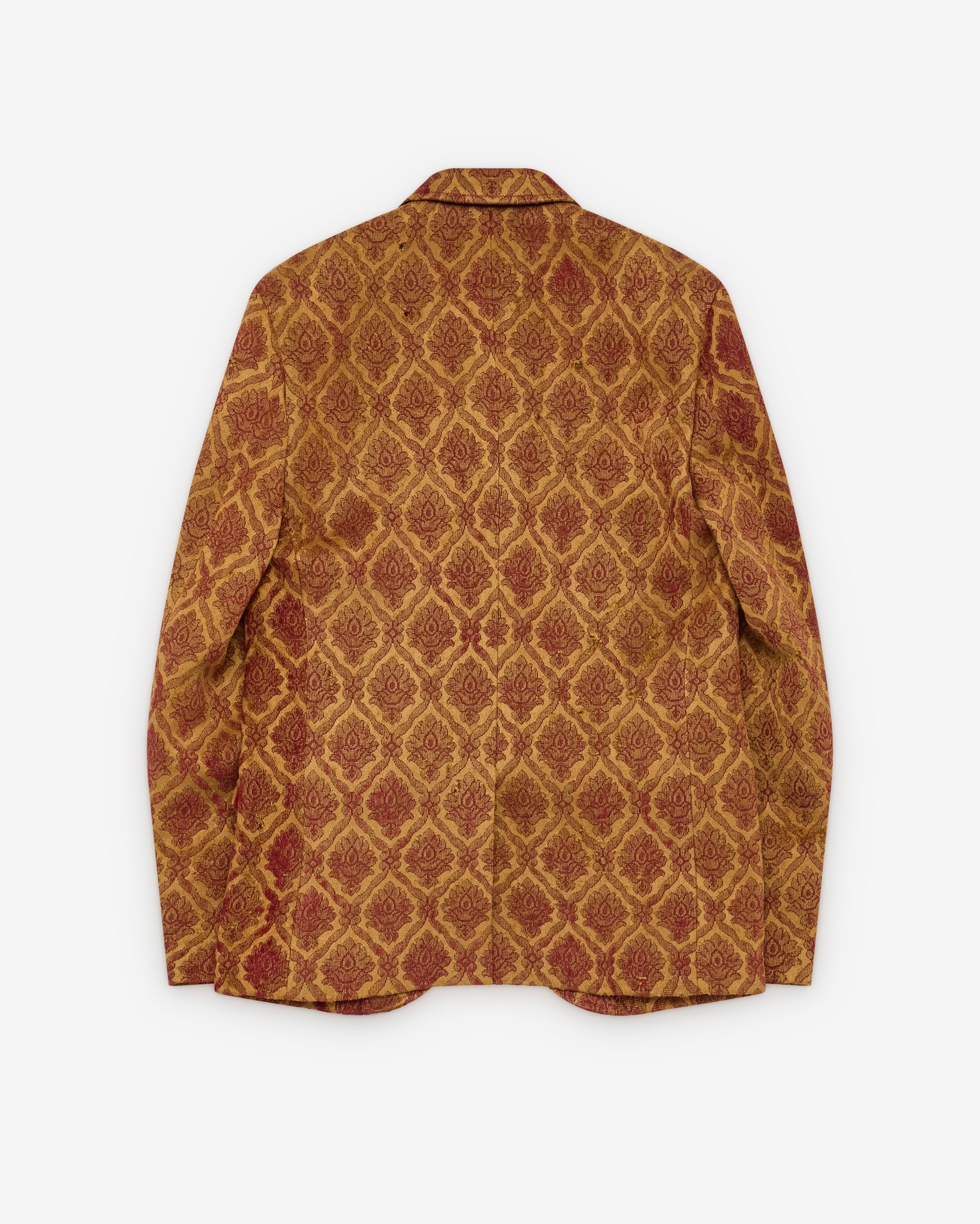 Single breasted jacketAcrylic rayon Damask jacquard patternNotched lapel collarDistressing throughout Three button front closureInternal lining Front flap close pockets