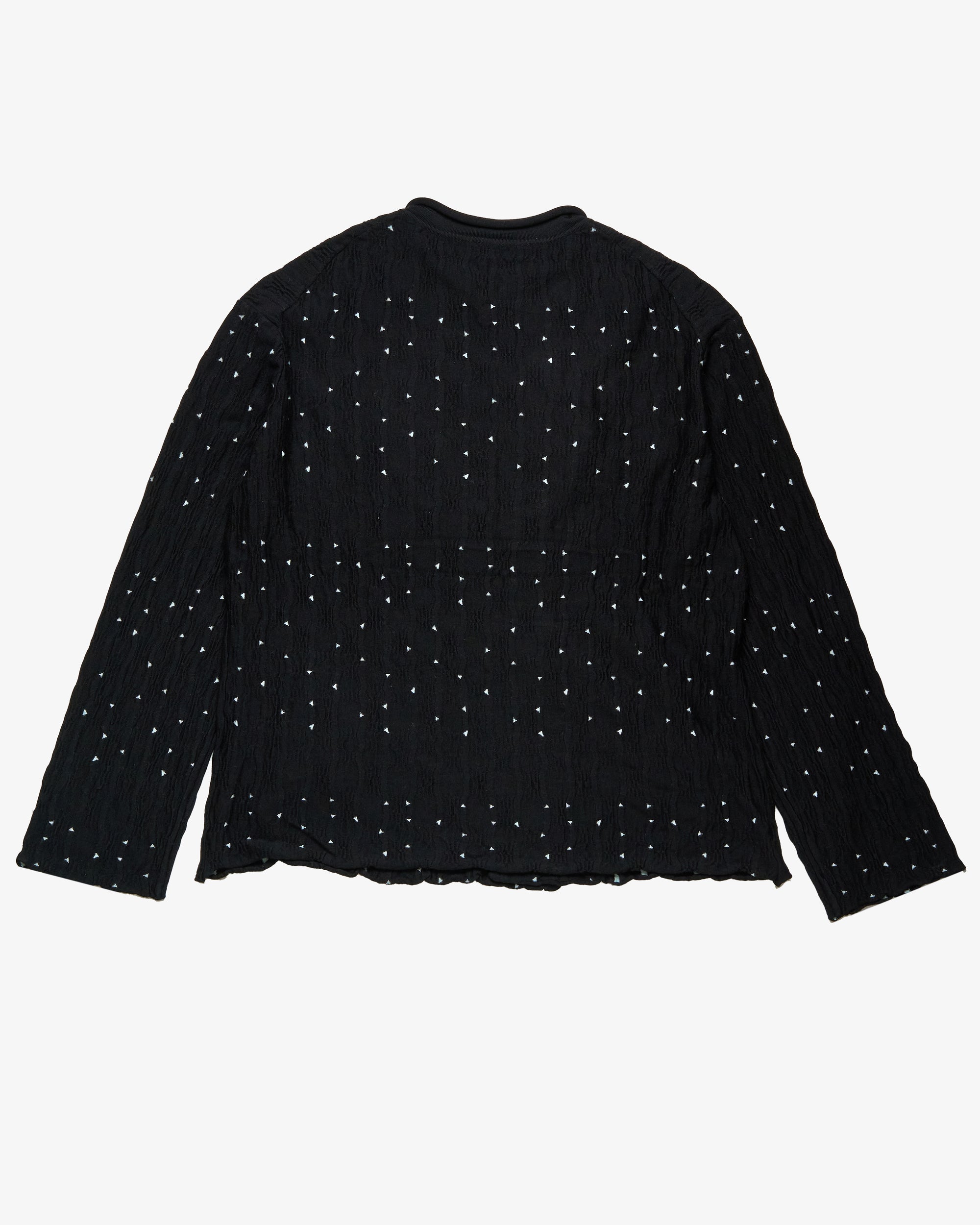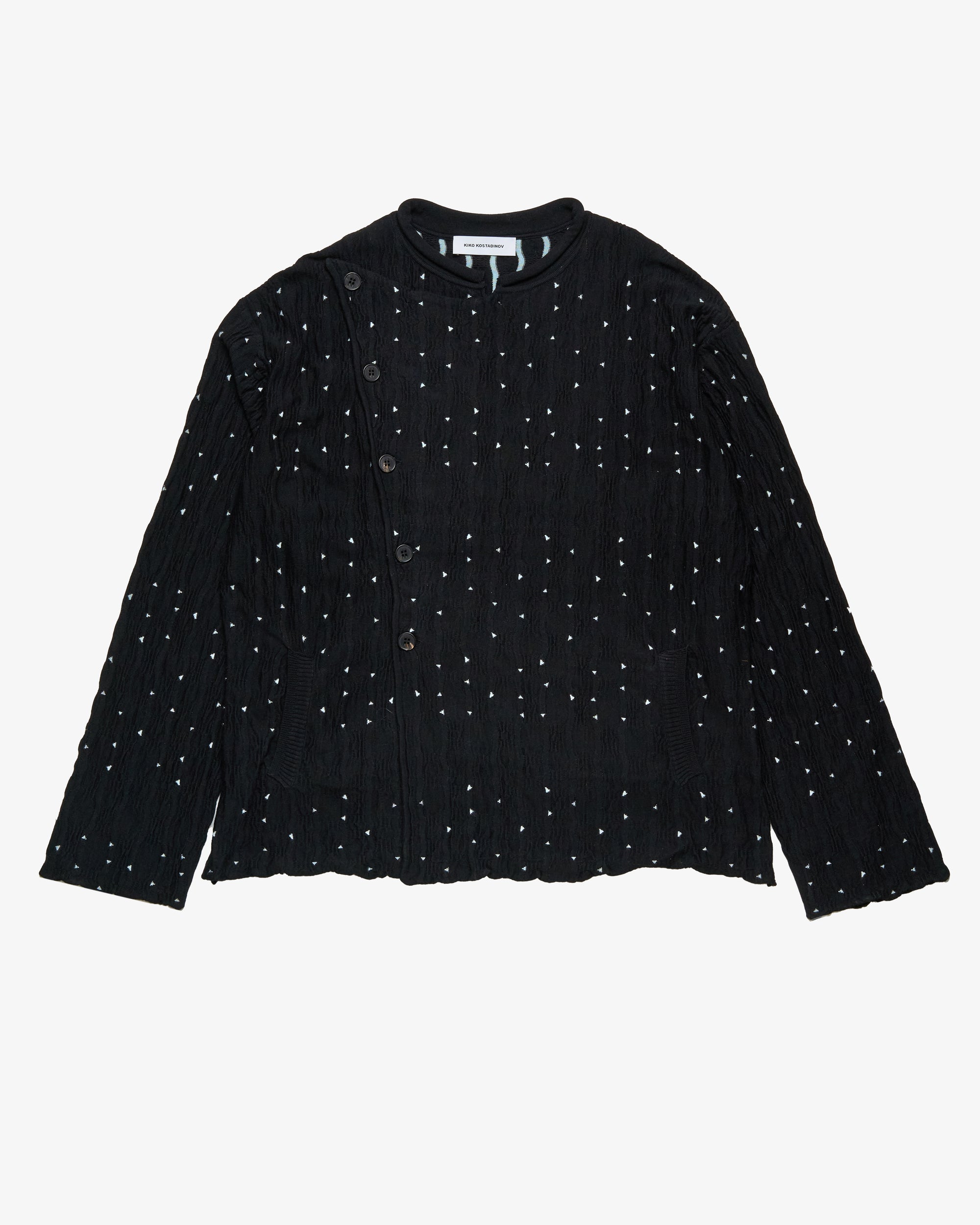 Raday Knit Jacketloose fitasymmetric front opening with five buttonsno collar two side pocketsEntirely knitted from textured wool and silk yarn