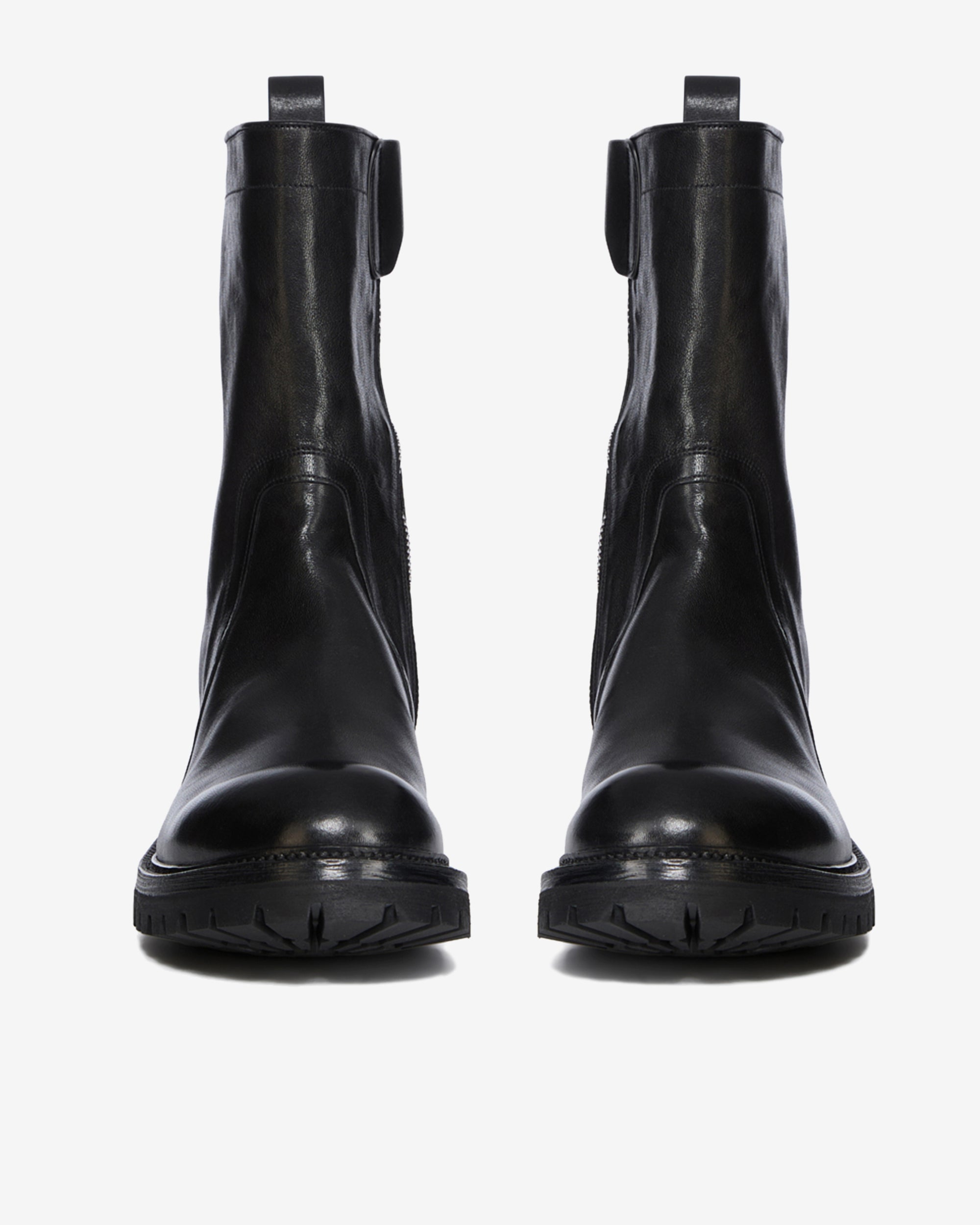 LWG-certified leatherTopstitched detailing throughoutPull-loop at heel tabPress-stud and zip closure at inner sideBuffed calfskin liningLugged rubber soleHeel: H1.5"100%COW LEATHER Made in ITALY