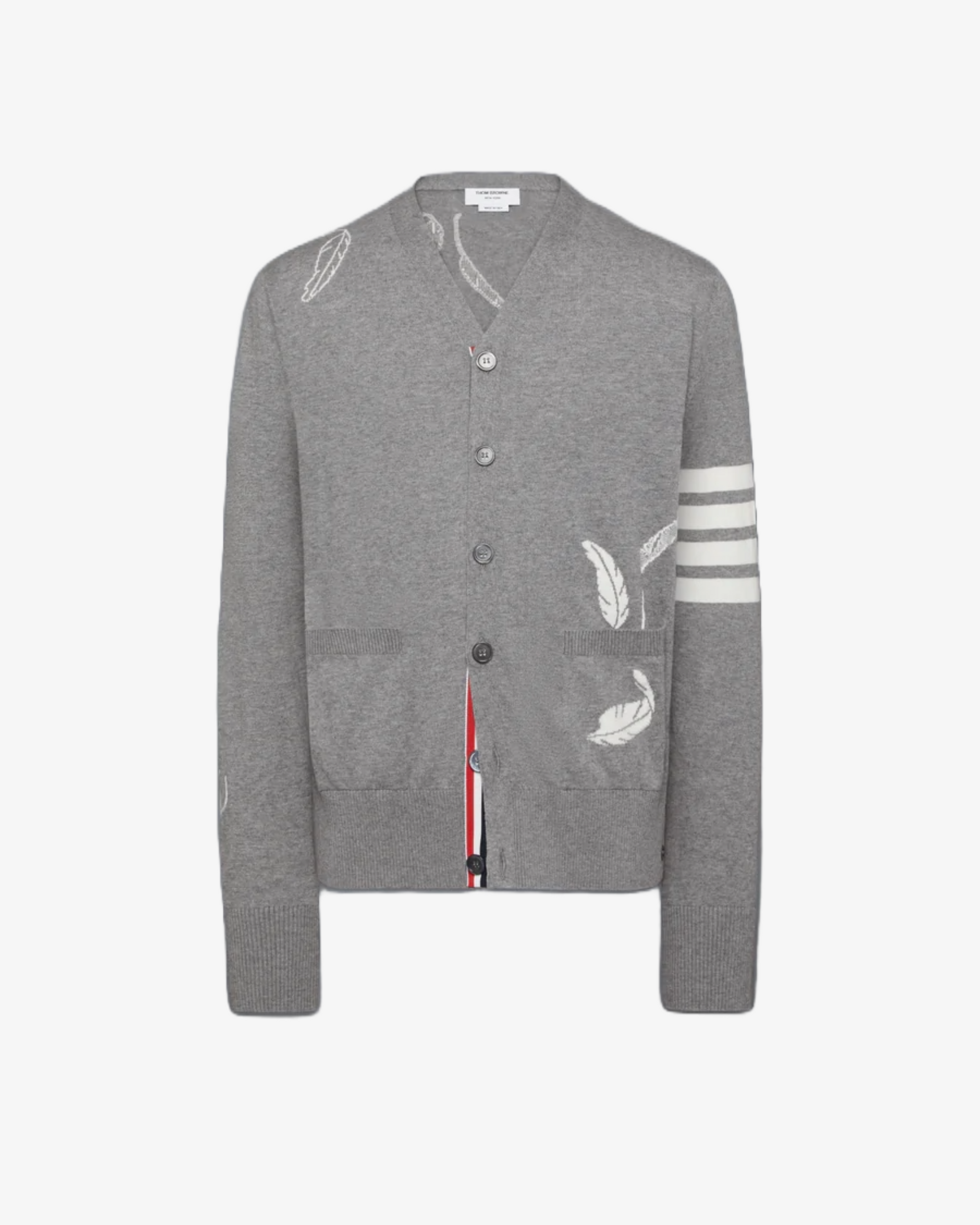 Front button closure with striped grosgrain placket 2 Front slip pockets 4-bar detailing Buttoned cuffs with signature striped grosgrain trim Buttoned side vents with signature striped grosgrain trim Signature striped grosgrain loop tab 100% Cotton Made in Italy