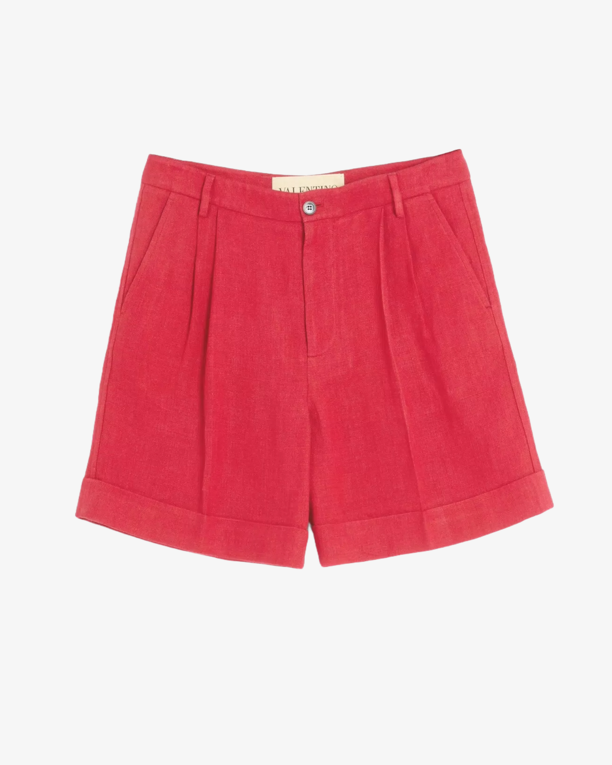 VALENTINO Men's Cuffed Linen Bermuda Shorts Red