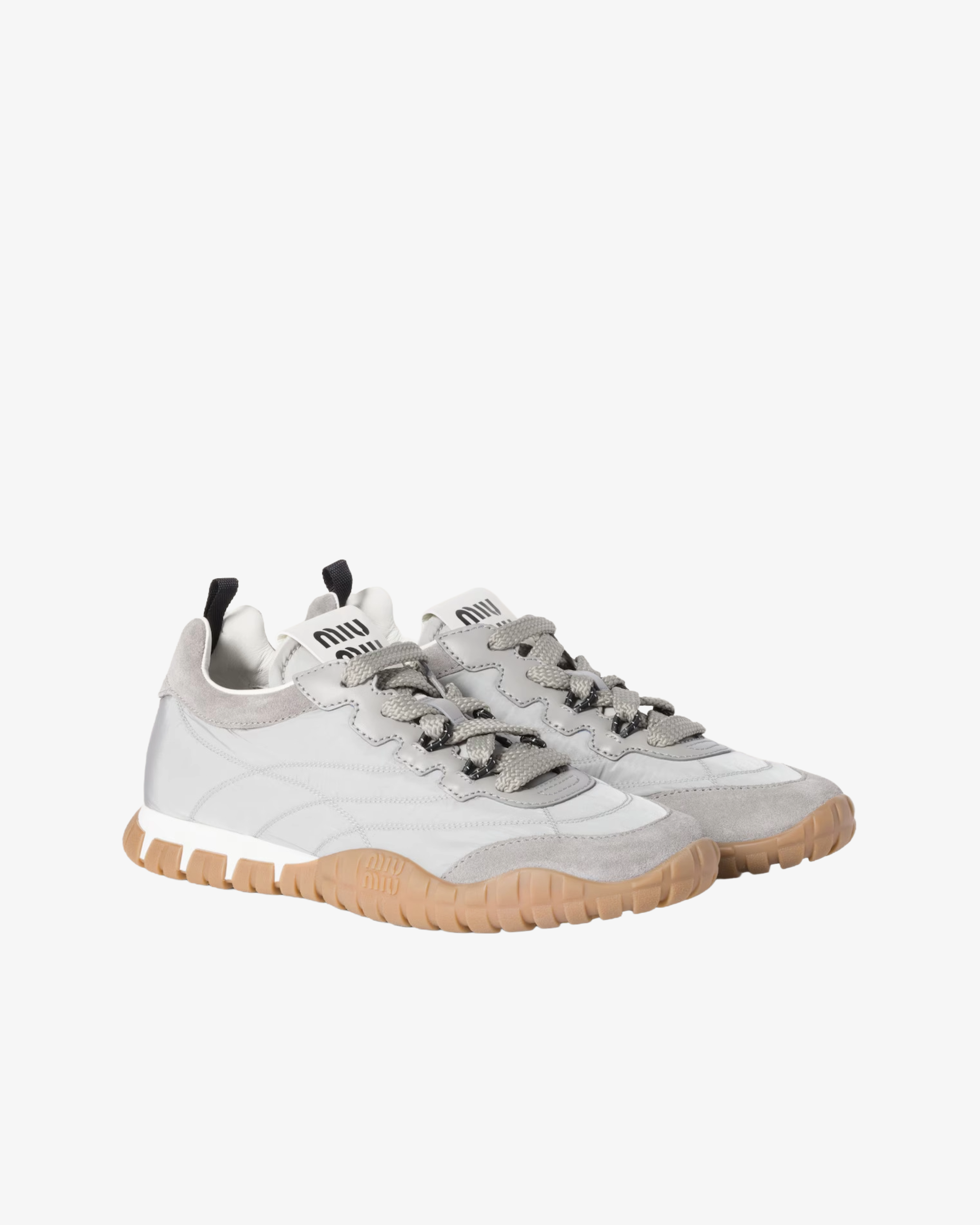 MIU MIU Women's Tyre Technical Fabric And Suede Sneakers Grey F0424