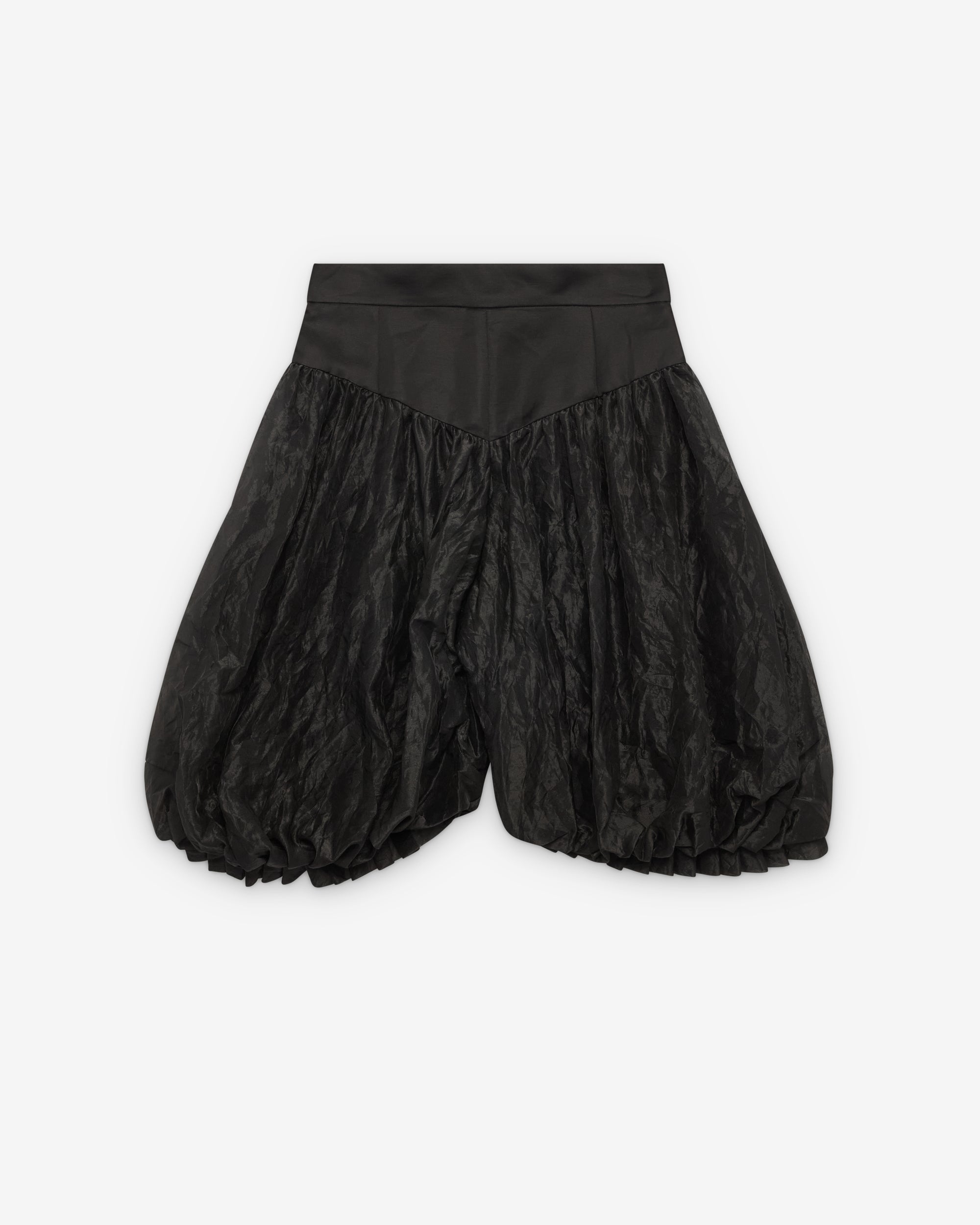 Balloon-shaped shorts flat waistbandtopstitched side pocketsgathers volume through to the hempin-tuck pleat detailing