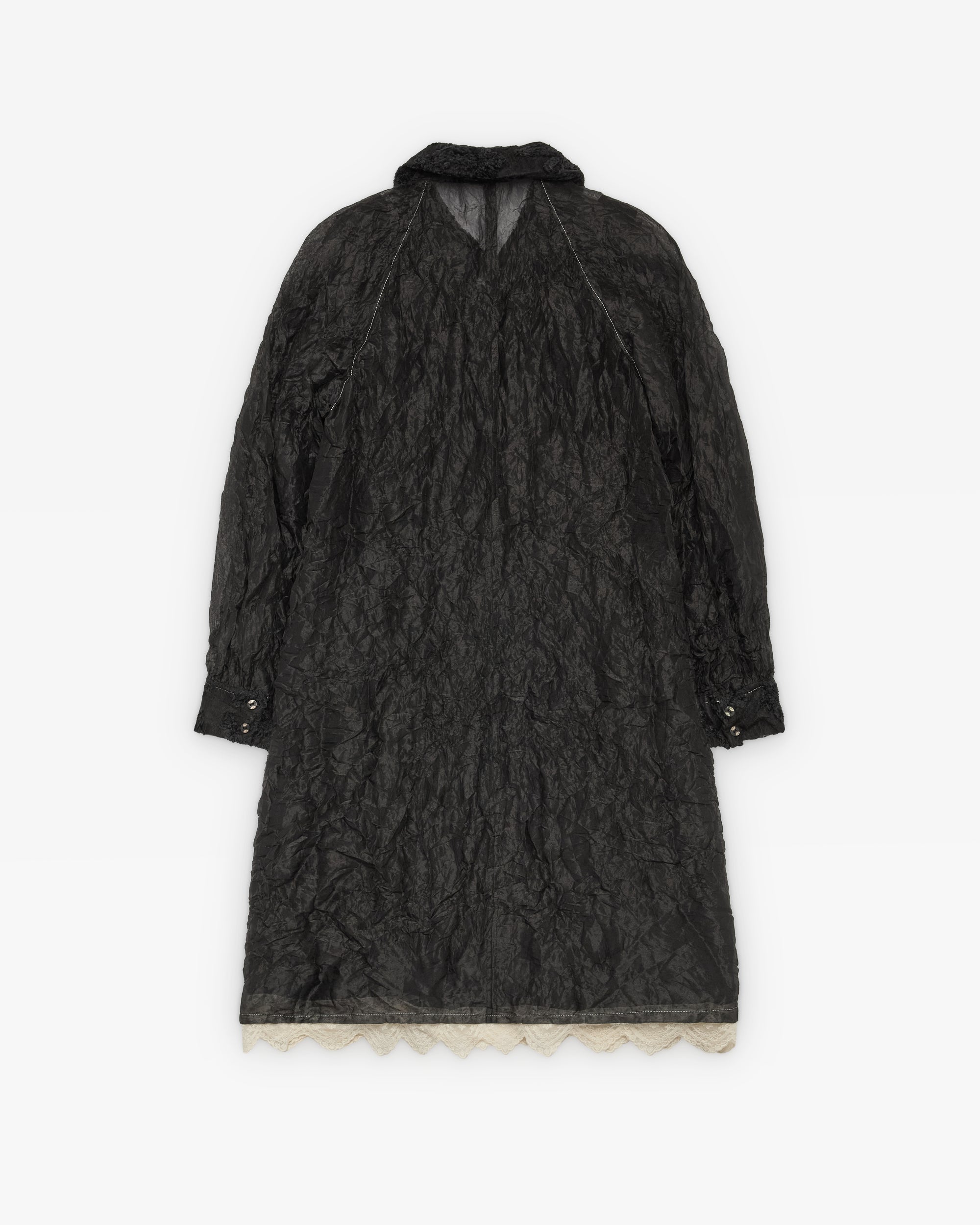 Peter collar Semi sheer fabricLace detailCrinkle fabricDrop shouldersInterior slip dress