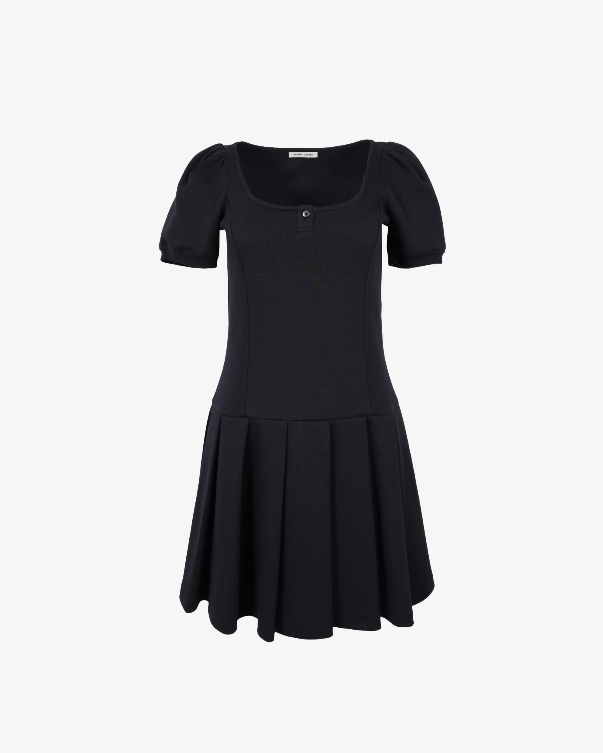 Mini polo dress in NavyMade in a soft pique Cotton blendFeatures a slightly dropped waistPleated skirtMother of Pearl buttons at neck