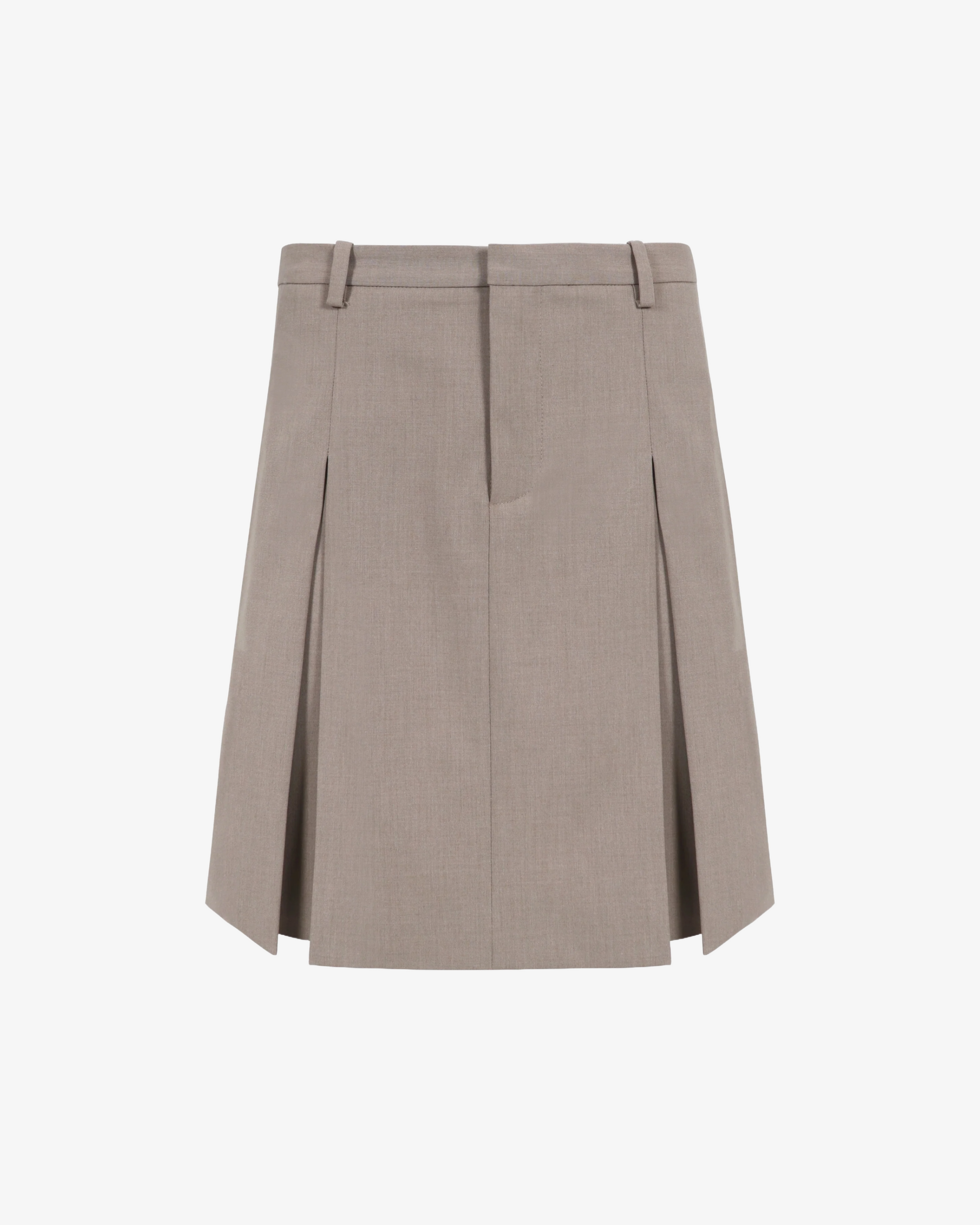 Tailored skirt in Taupe suitingLength hits above kneelZipper at sideZipper closure at front
