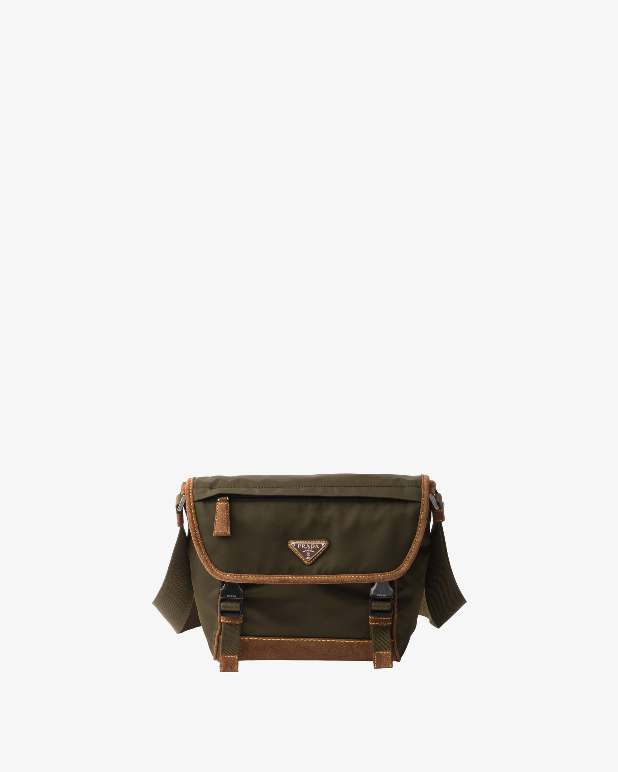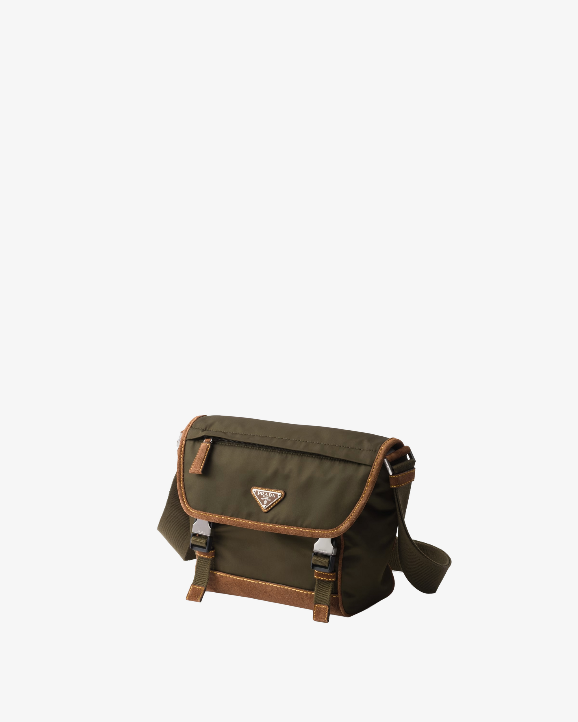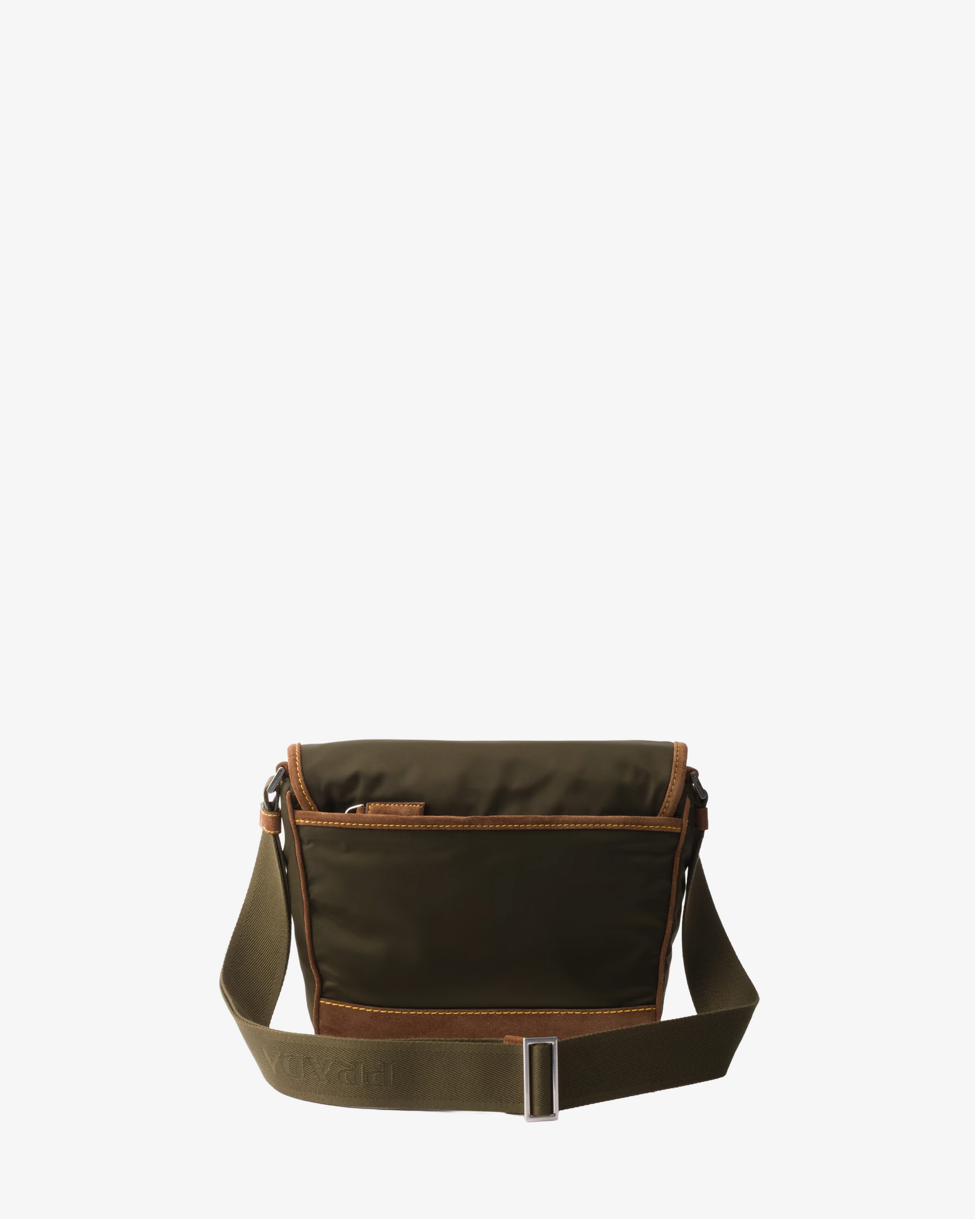 Prada Men's Medium Re-Nylon And Suede Shoulder Bag Khaki F041O