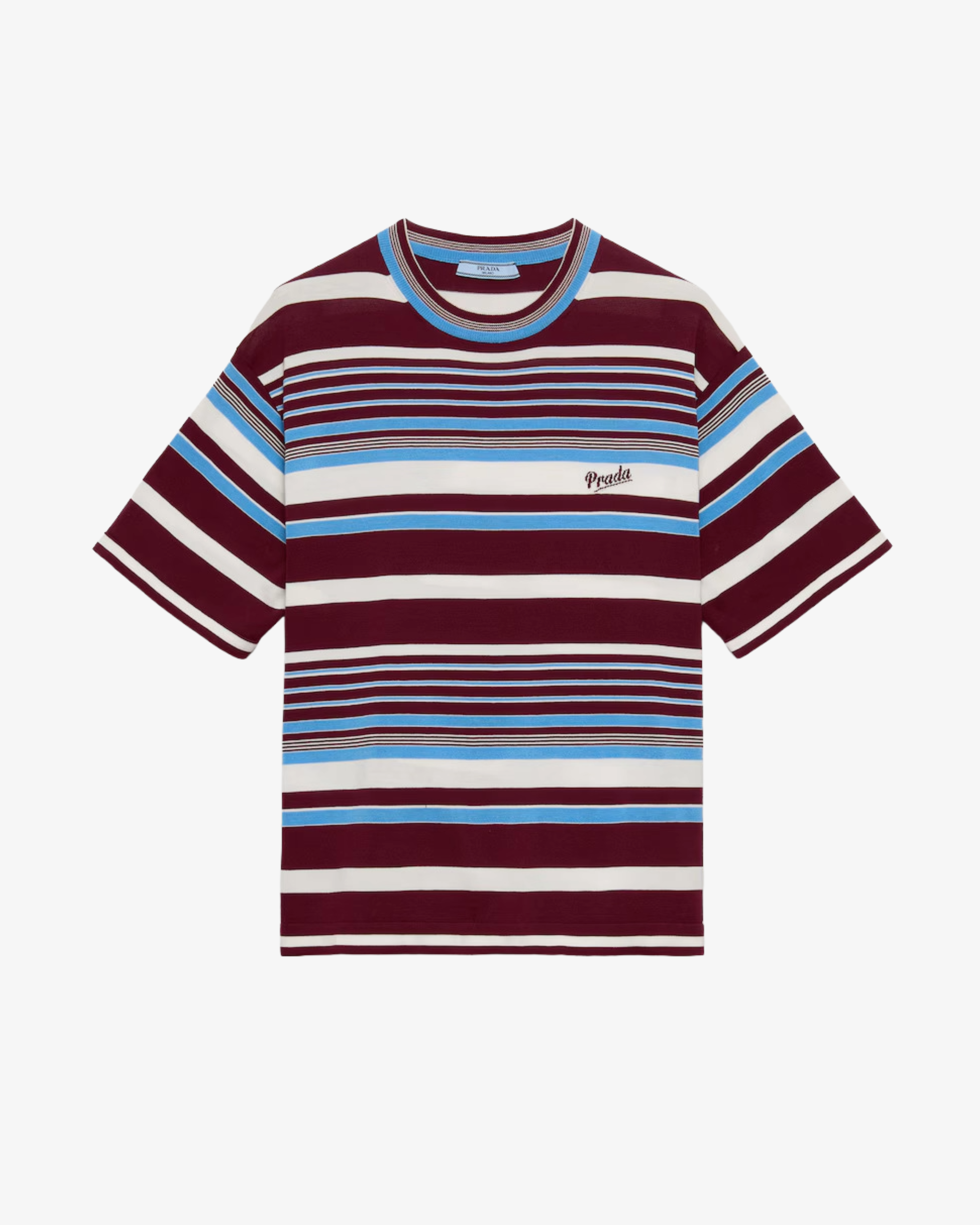 Prada Women's Striped Cotton Crew-Neck Sweater Blue