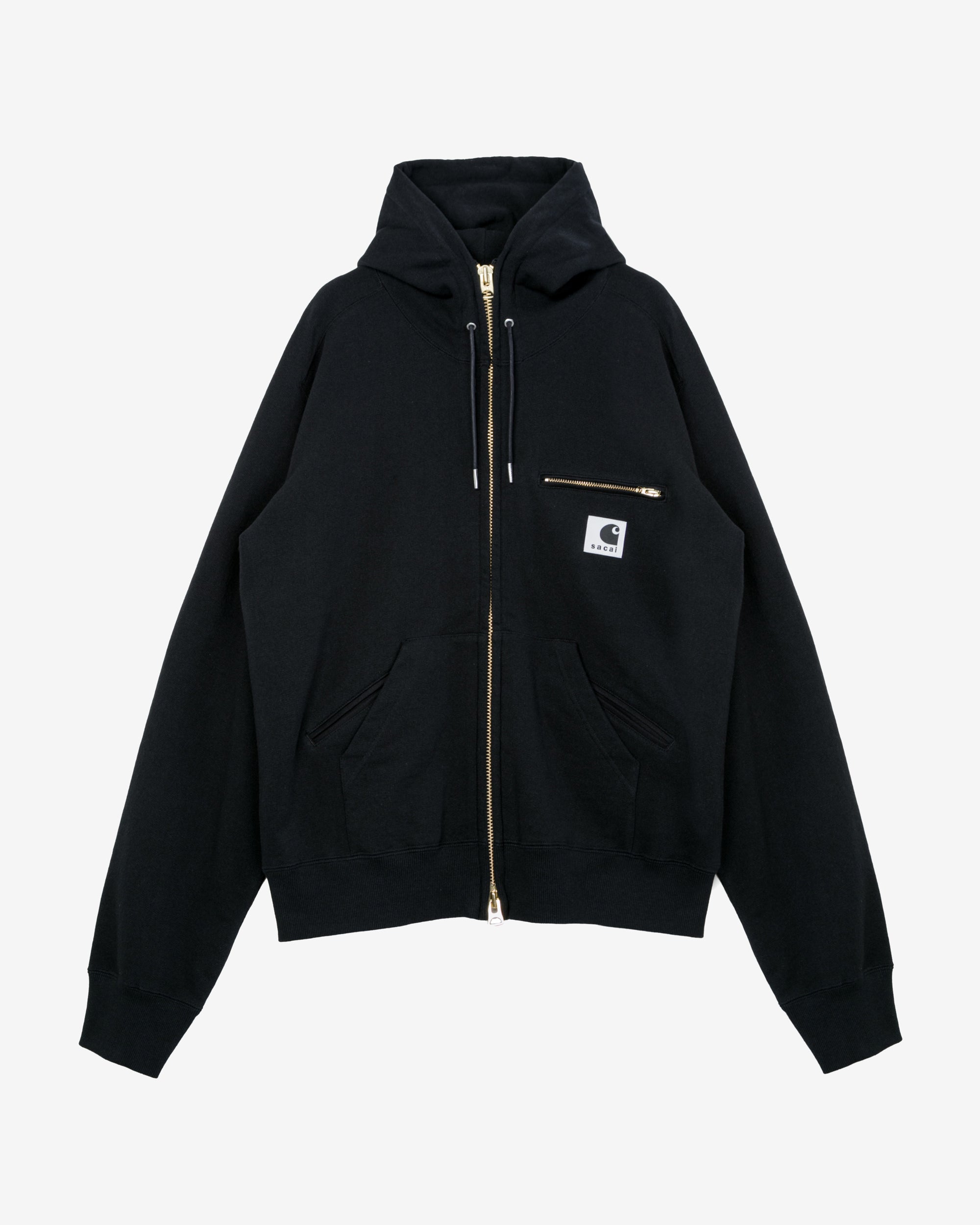 Drawstring hoodZip front closureRibbed cuffs and hemDual branded patch Zip close chest pocket