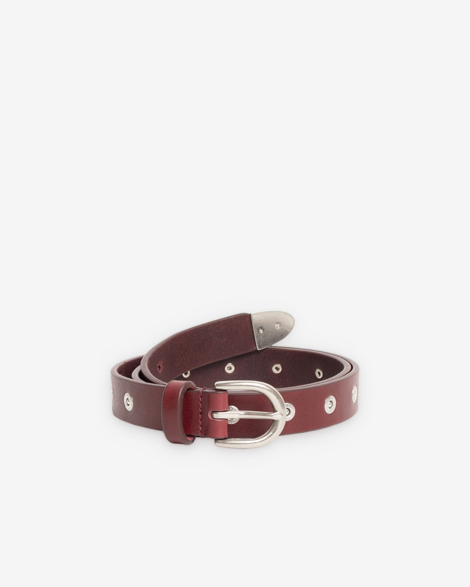 Leather belt with metal buckle Studded with Stüssy-branded rivets S/M length: 37 / 94cm L/XL length: 43 / 110cm Width: 1 / 2.5cm Unisex100% leather Imported