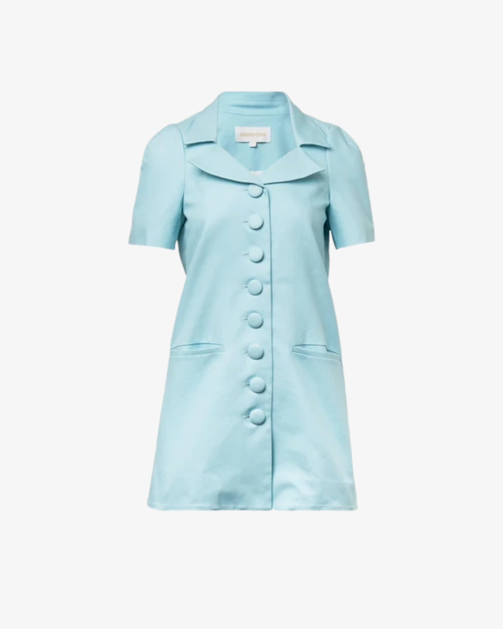 SHUSHU/TONG Women's Lapel Short Sleeve Dress Blue Tu100