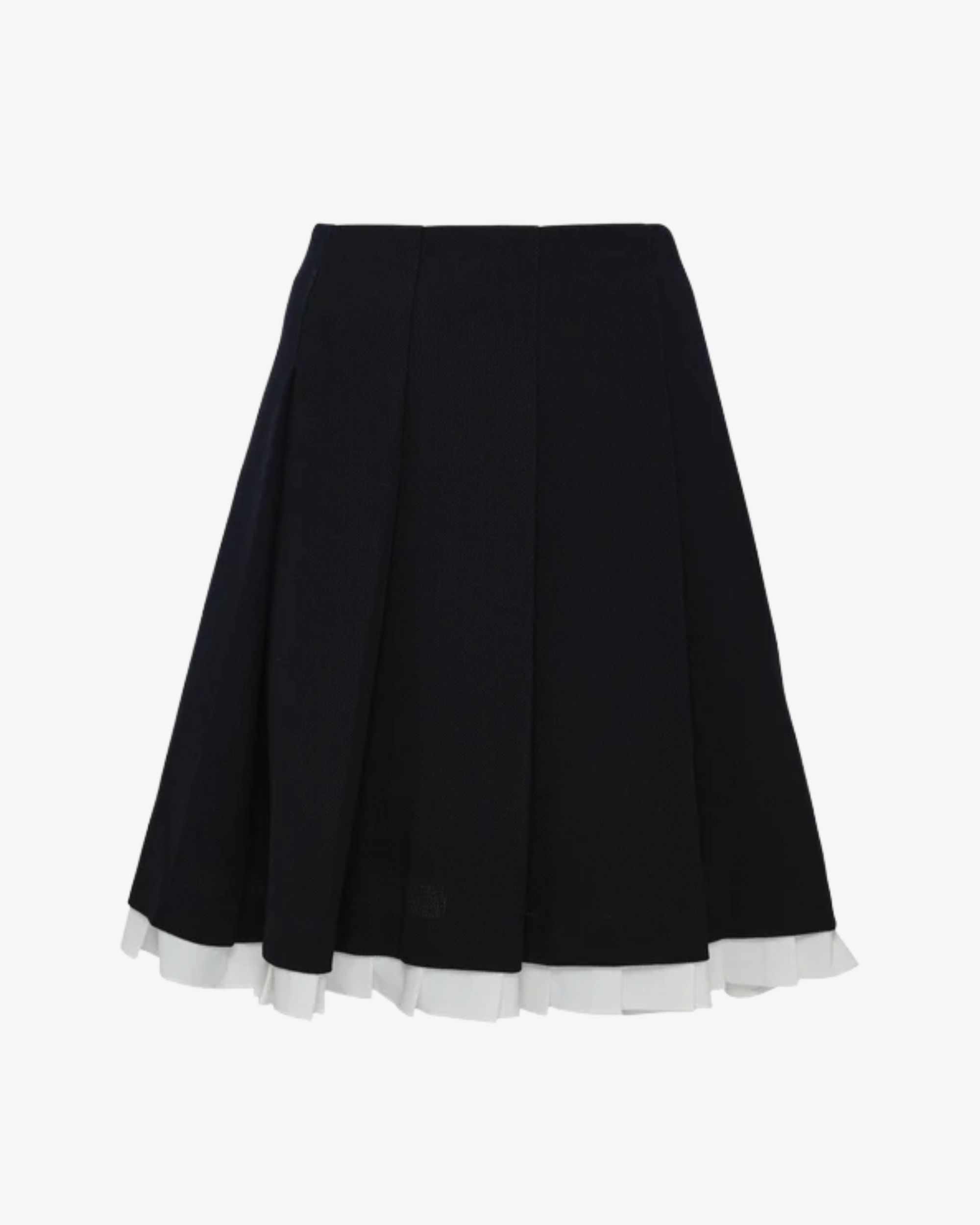 SHUSHU/TONG Women's Patchwork Lace Wide Pleat Skirt Navy Na100