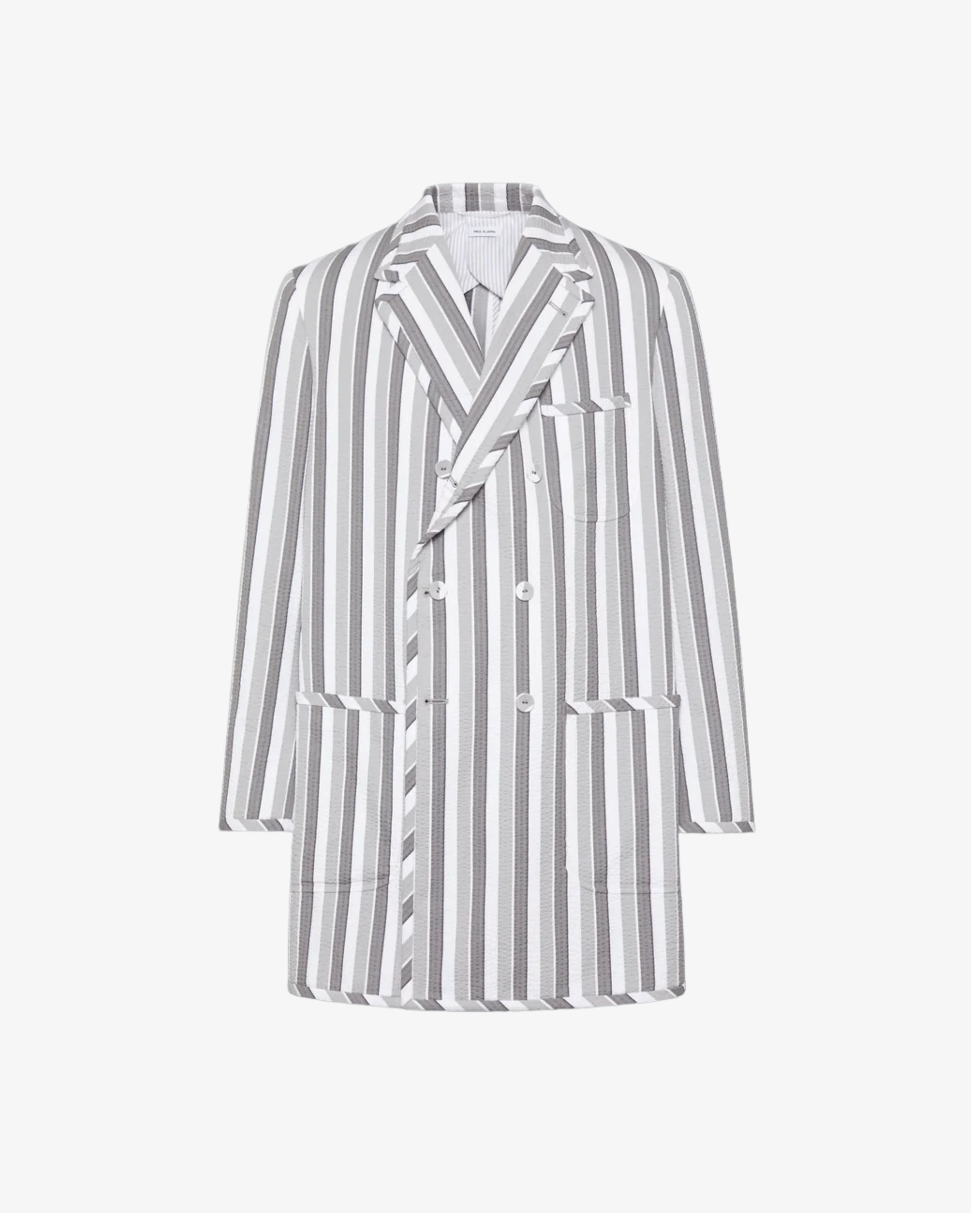 Front button closurePatch chest pocket and hand pocketsThree interior pocketsButtoned cuffs with RWB grosgrain trimSingle back ventAllover self trimSignature striped grosgrain loop tabWide lapel fit - Fit 4Oversized fit
