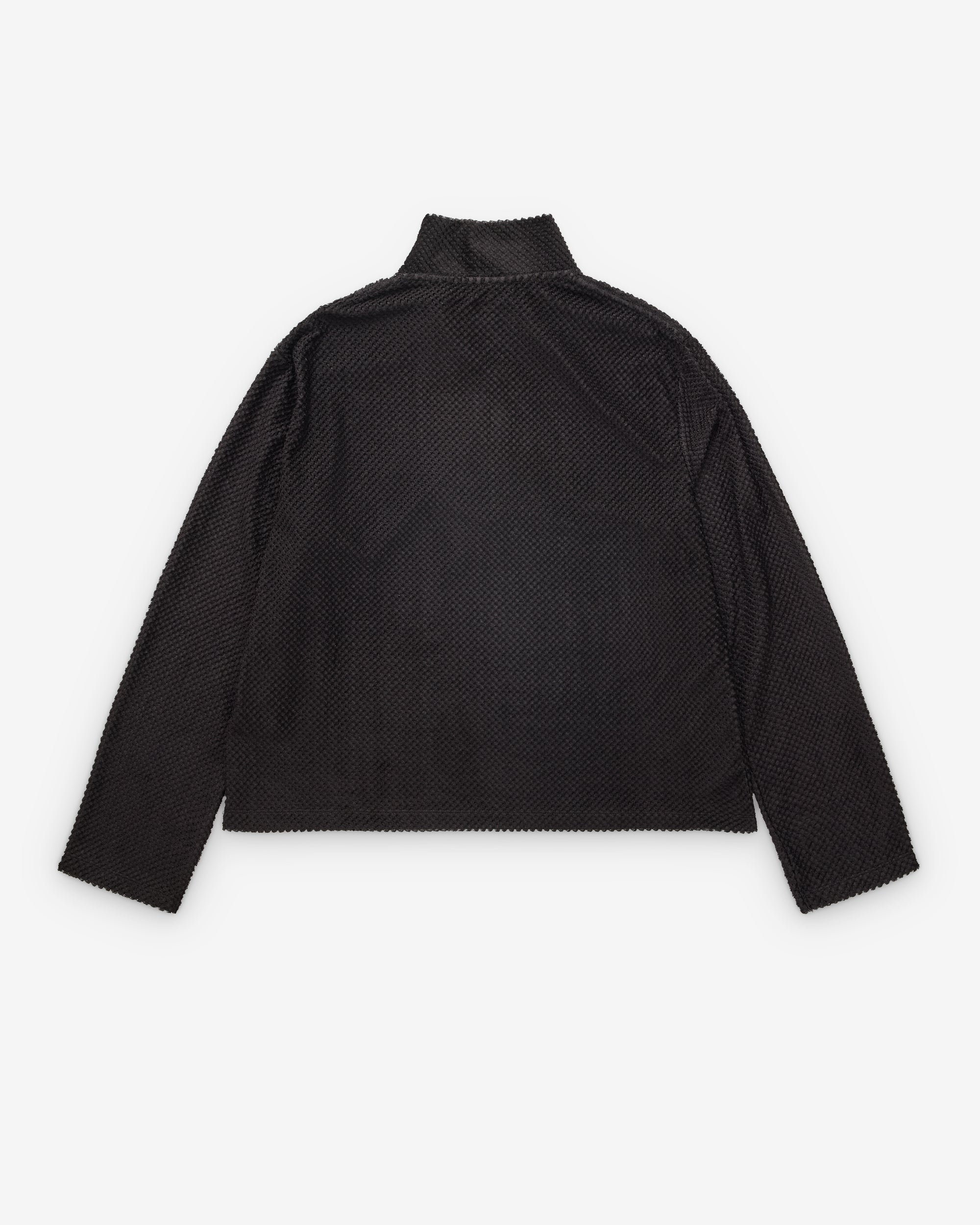 Funnel neck collarQuarter zip closureEmbroidered graphicsTextured fabric