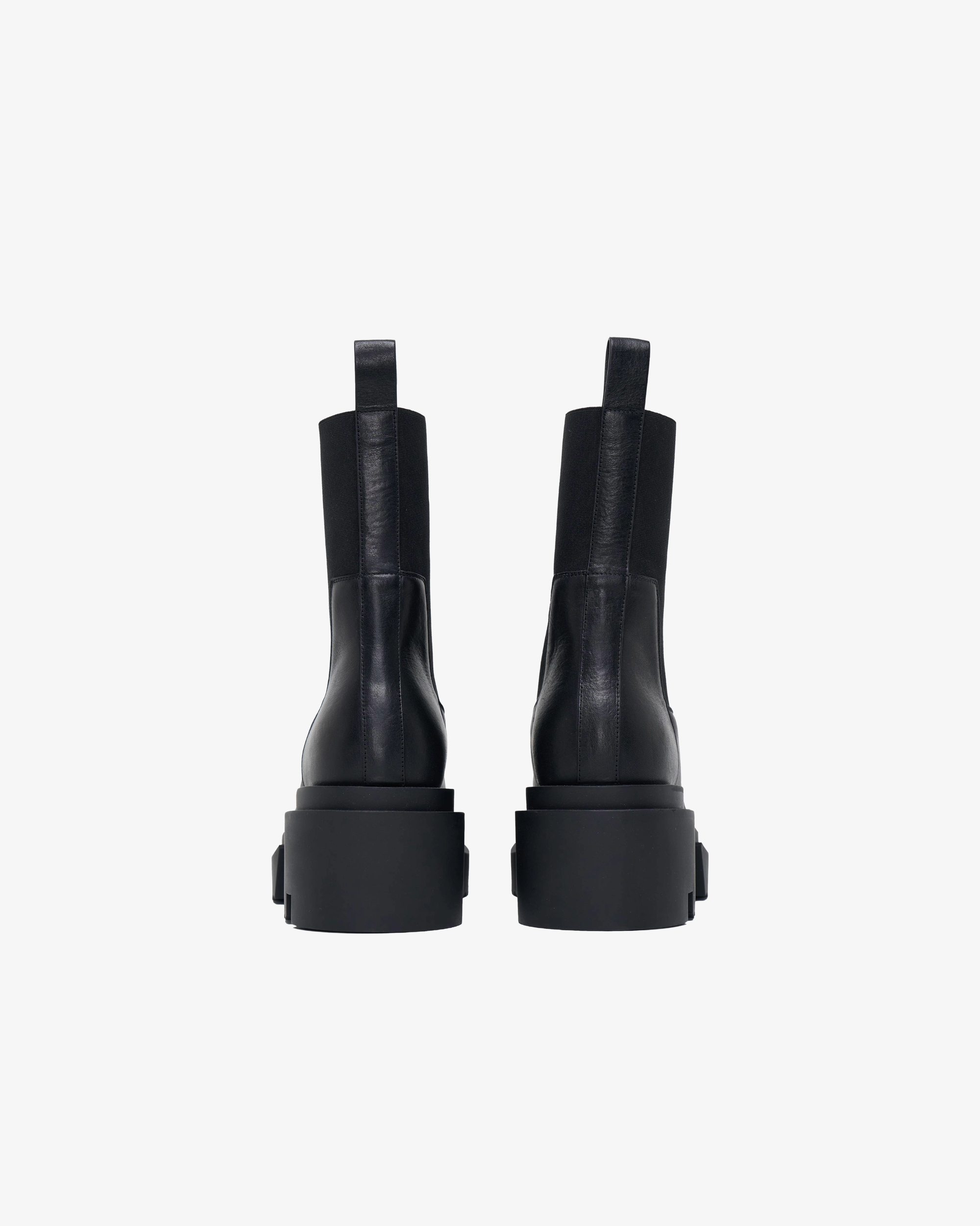 LWG-certified leatherPull-loop at heel collarElasticized gusset at sidesBuffed calfskin liningTreaded rubber block heel and platform solePlatform: H1.5"Heel: H3"100% LeatherMade in Italy