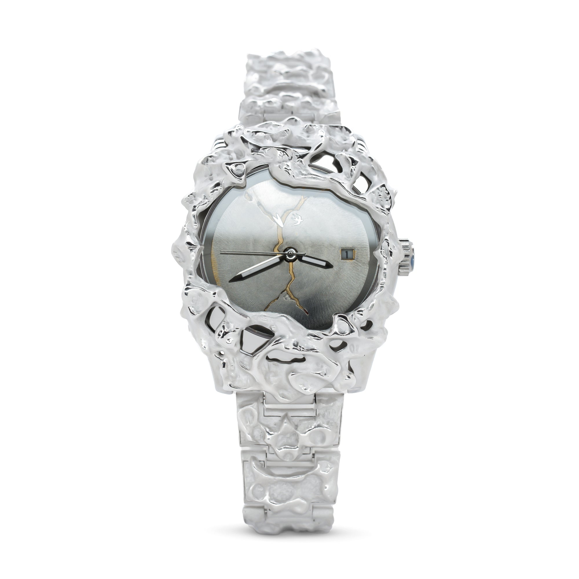 The watch has been handcrafted in the US, and is made of sterling silver, stainless steel with a Japanese three handautomatic mechanical movement.
