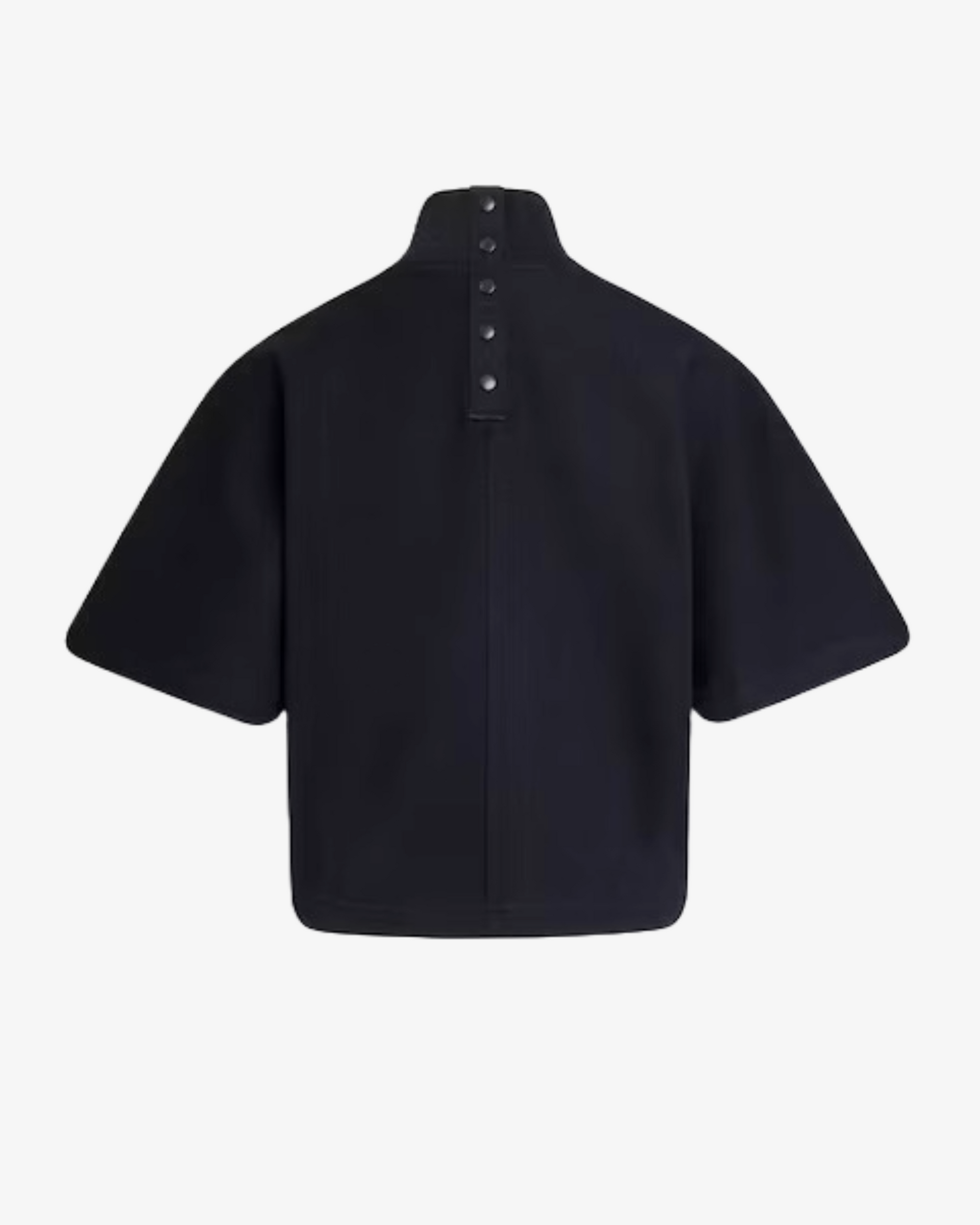 T-shirt in ribbed compact cotton jerseyHigh neck collar, square short sleeves, snap button closure at the backSquare fitMade in Italy