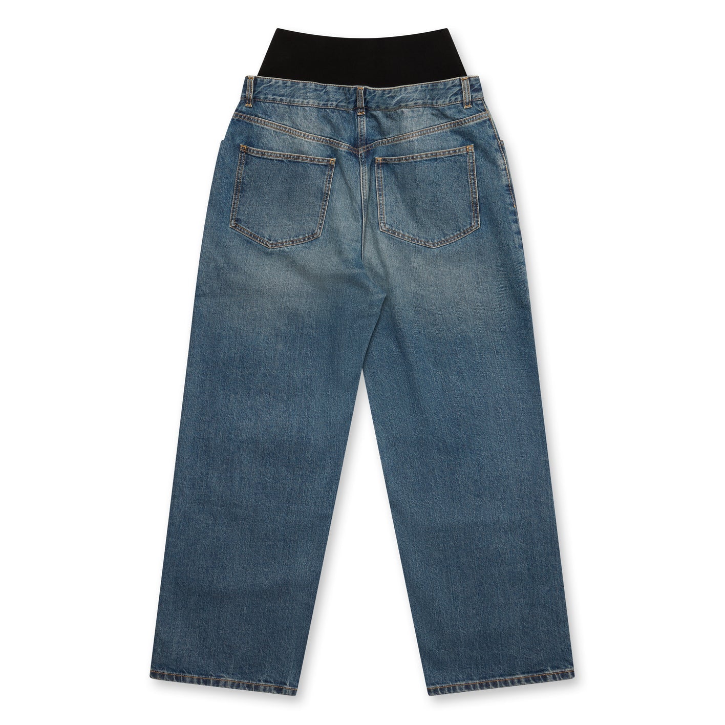 Bi-fabric jeansBlack knitted waist bandLoose fit and low waist signature alaïa stitches at the backMade from stone washed blue denim