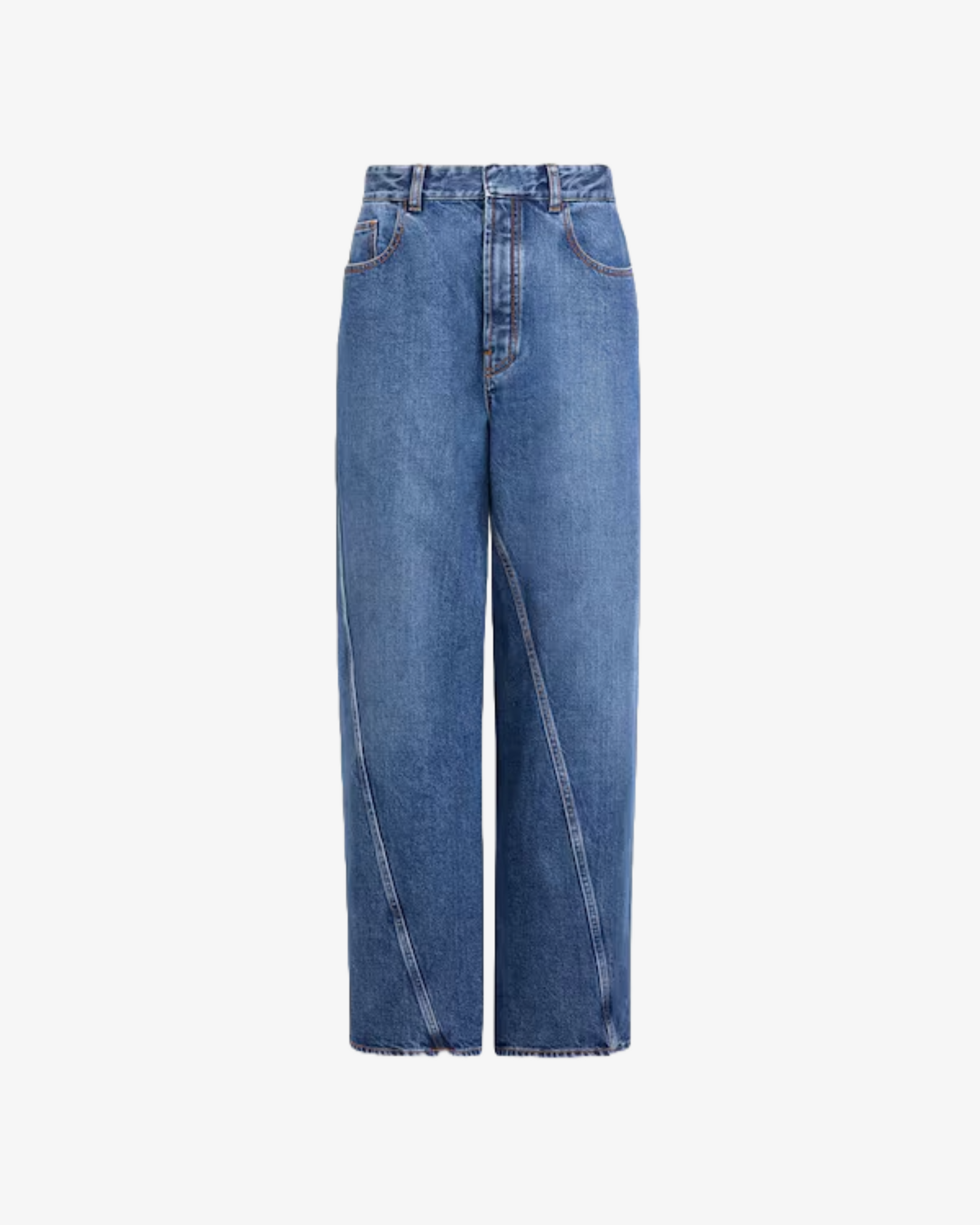 Twisted jeans in deep stone denimMid-rise, straight leg with twisted seams, hardware denim buttons, contrasted tobacco-coloured topstitching details, five pocketsStraight legMade in Italy
