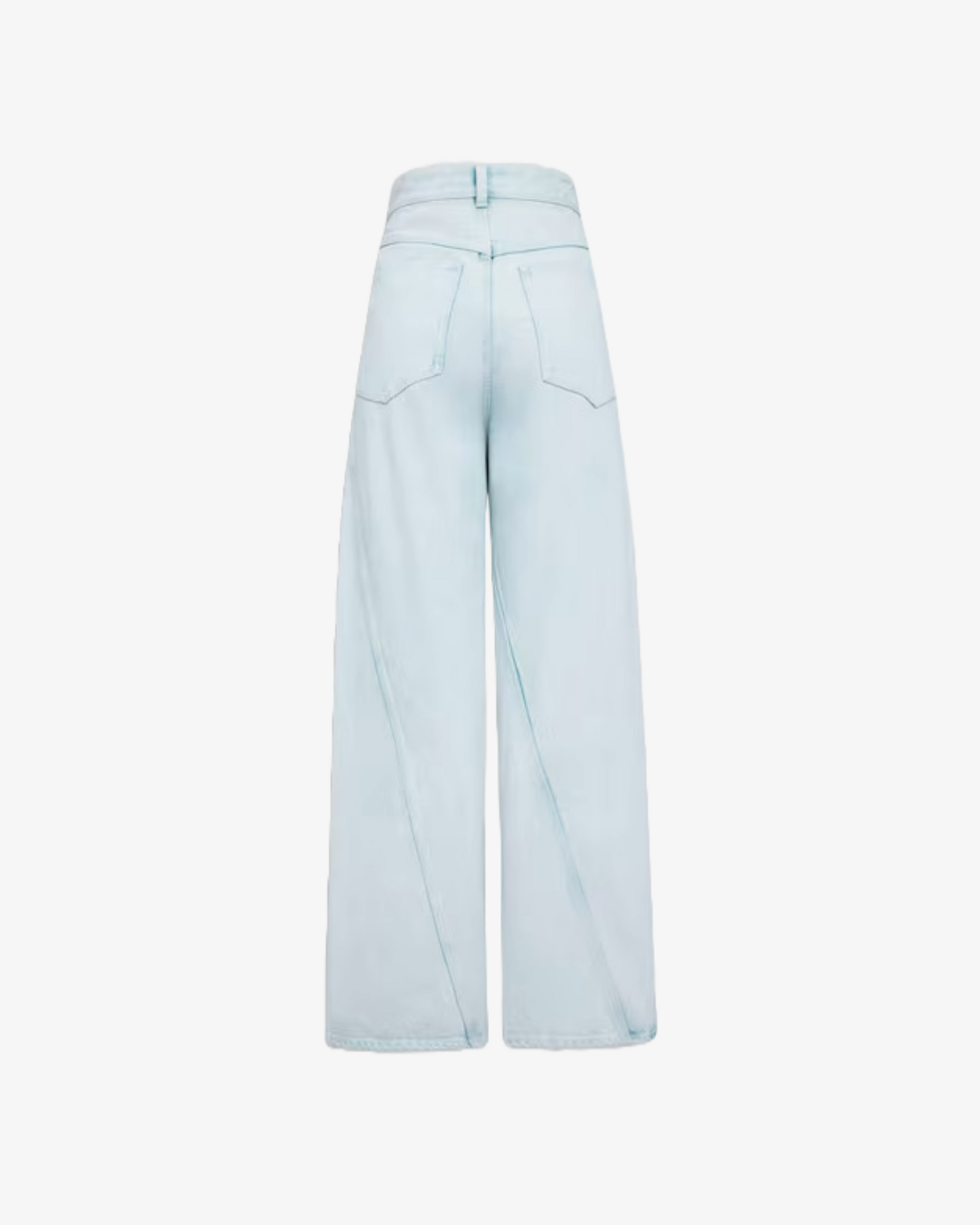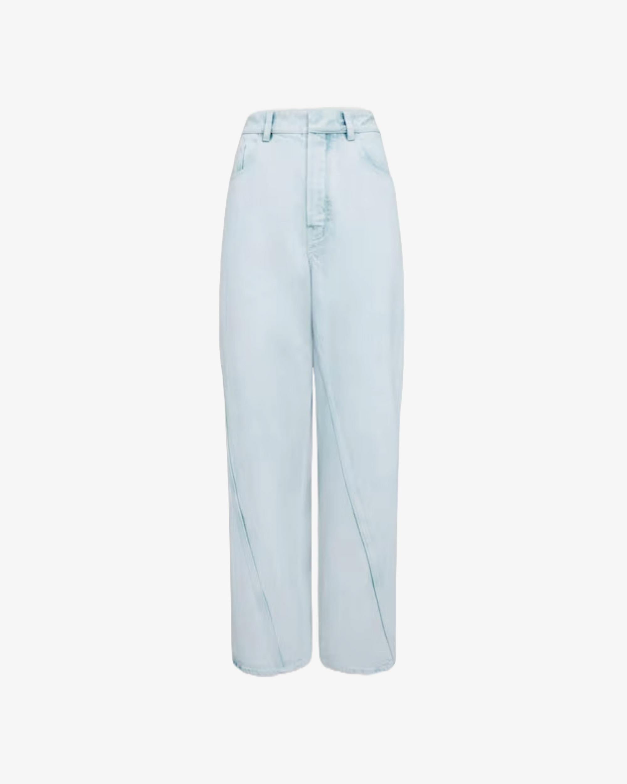 Twisted jeans in ice denimMid-rise, straight leg with twisted seams, hardware denim buttons, contrasted tobacco-coloured topstitching details, five pocketsStraight legMade in Italy