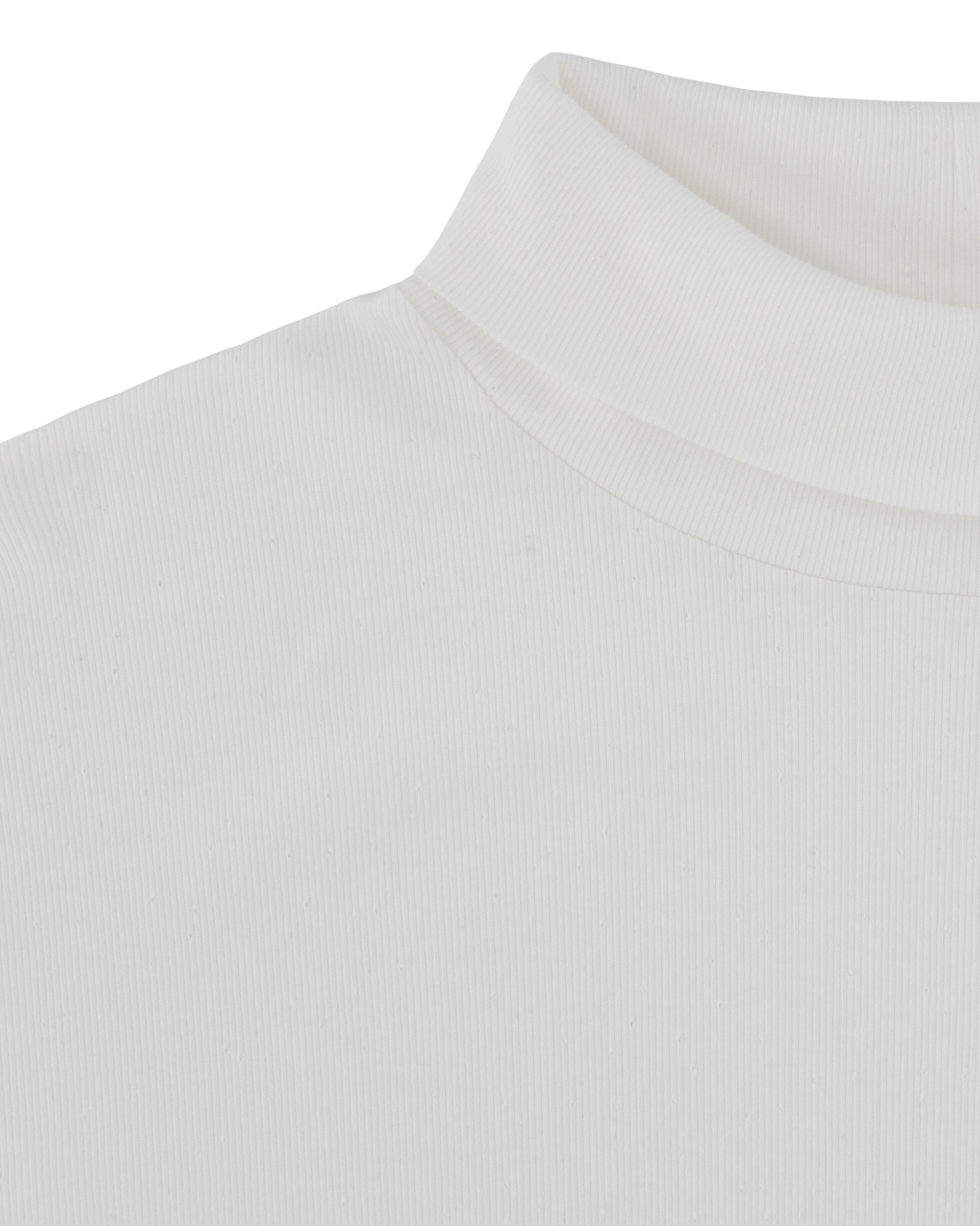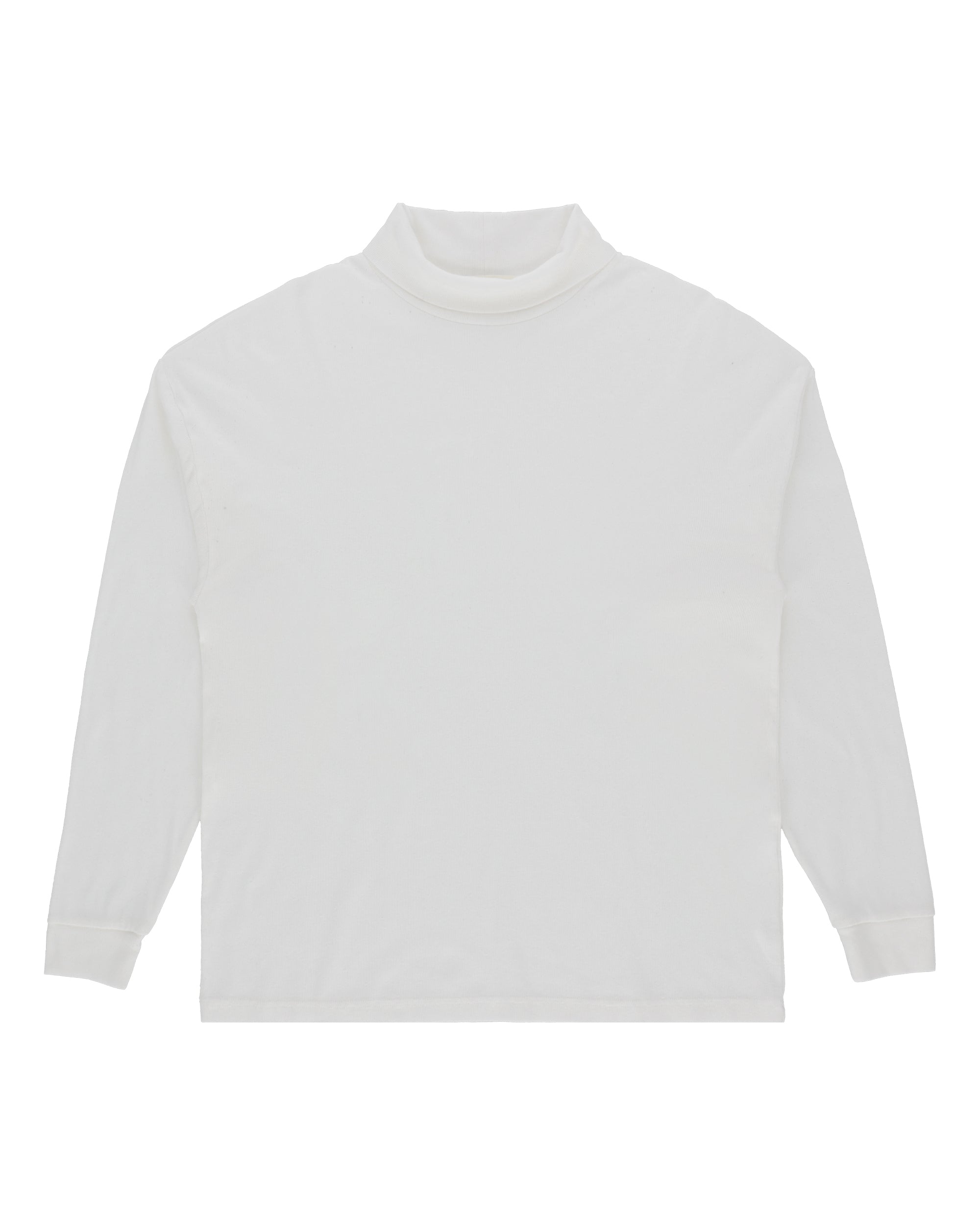 Long sleeve roll neck with distressed needle punch finish in a lighweight fabric.