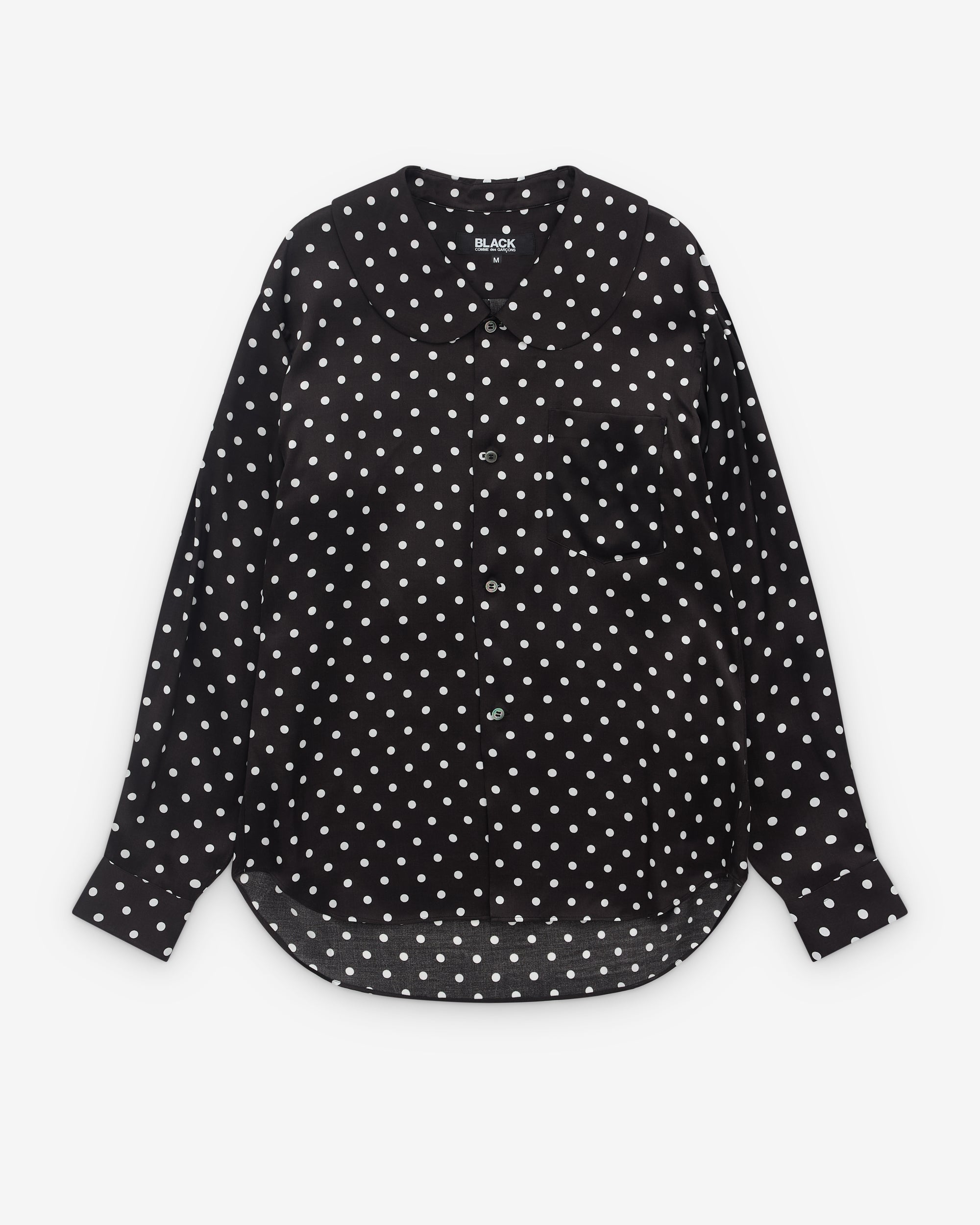 Large round collarPatch pocketButton placketCurved hemCentral box pleat at rear yoke