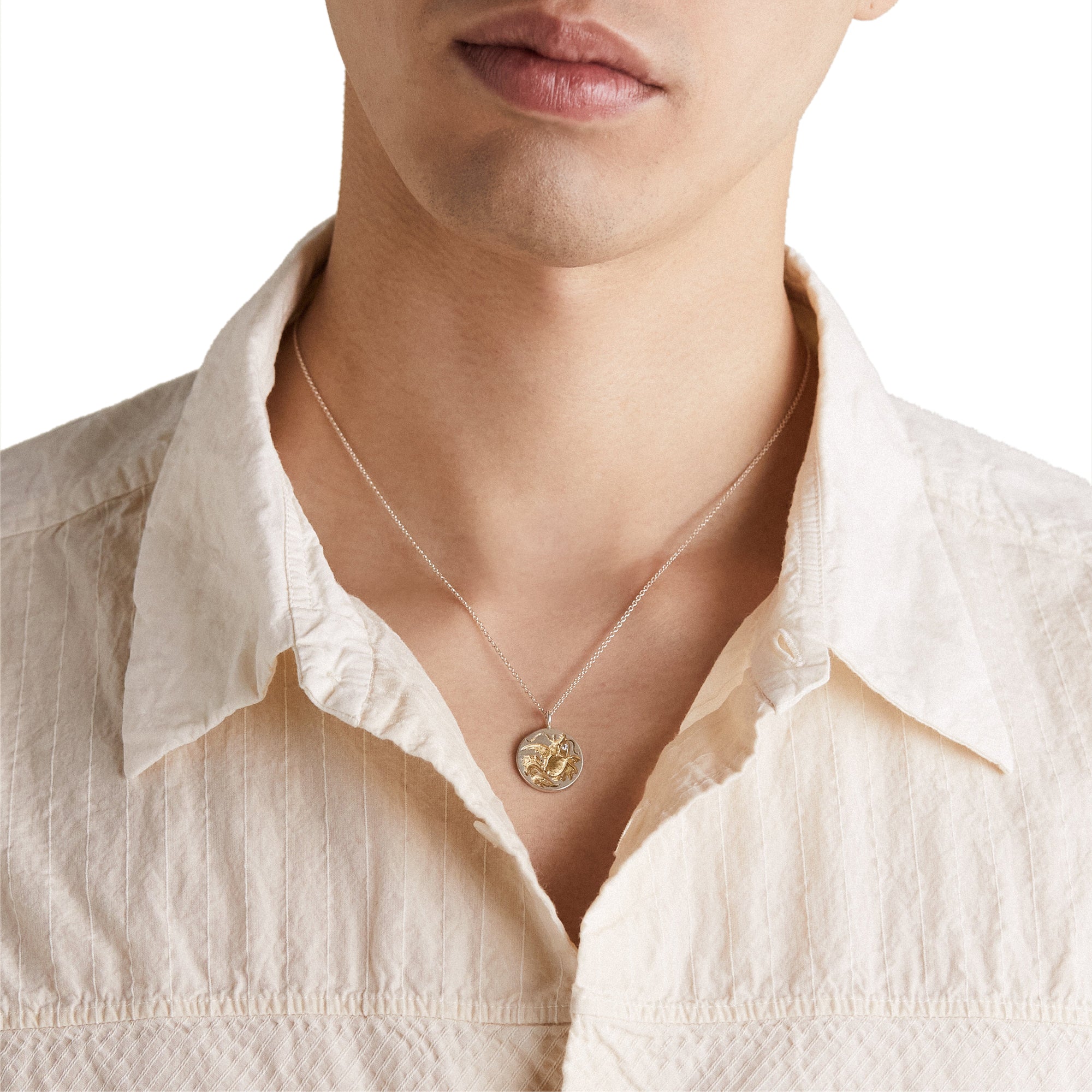 Sterling silver with 18k Yellow gold with diamond, and a 9k chain, Handmade in London.
