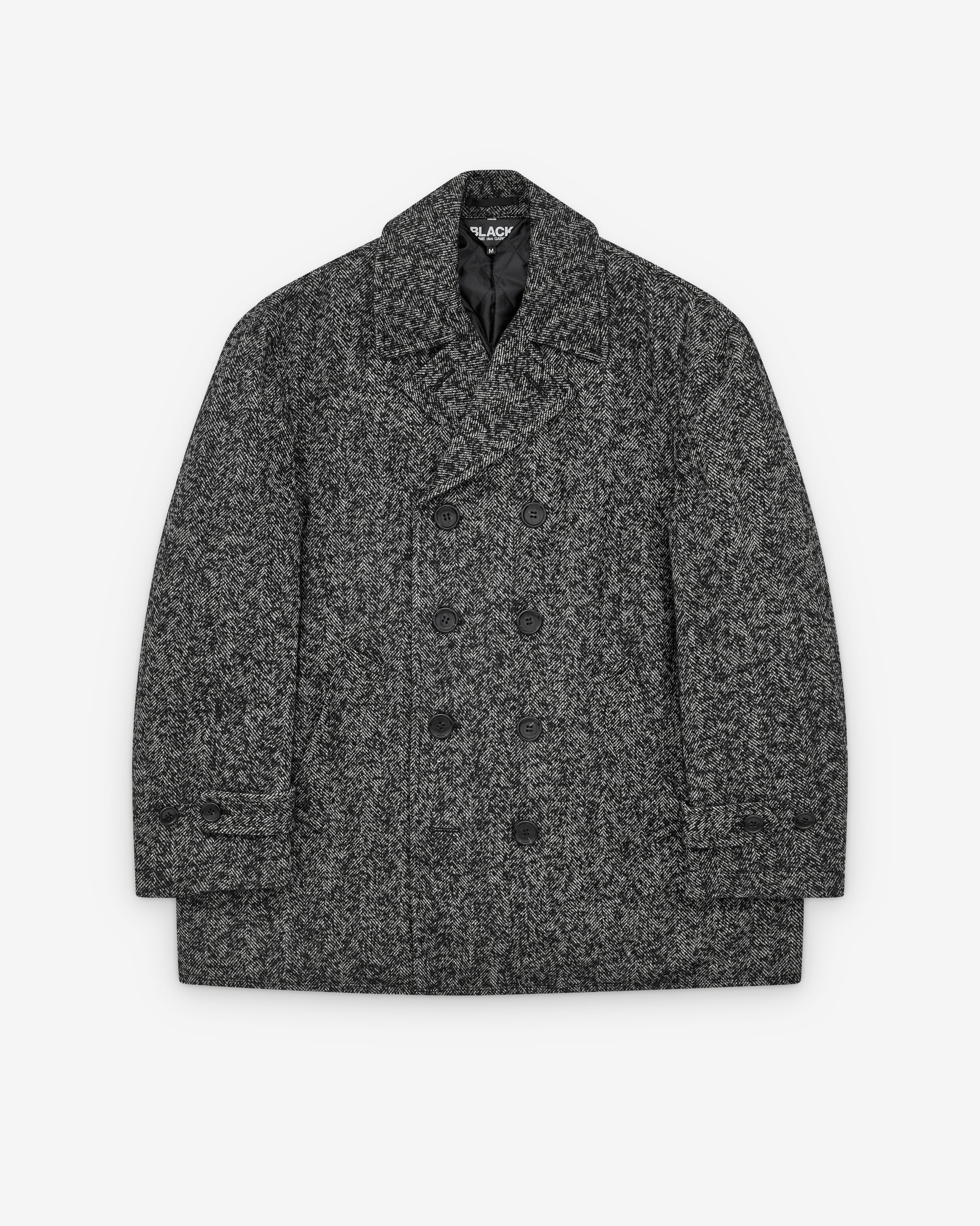 Black Comme des Garçons Men's Double Breasted Herringbone Coat Black/White